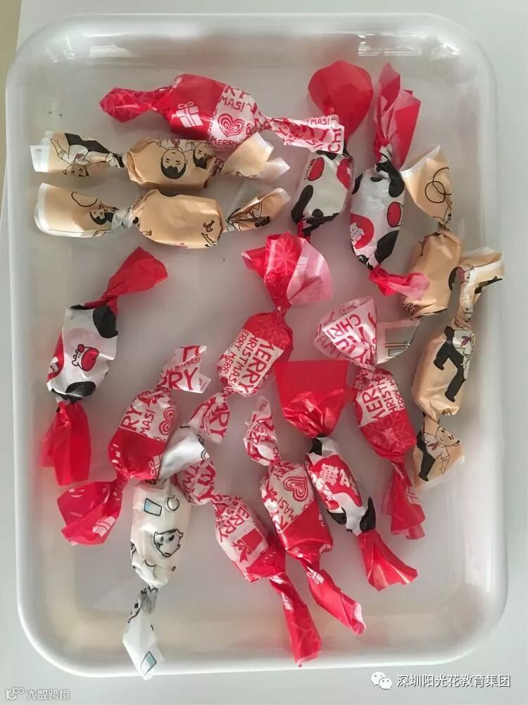 老师帮潮宝把牛扎糖切好后,宝贝们给牛扎糖穿上漂亮的衣服!