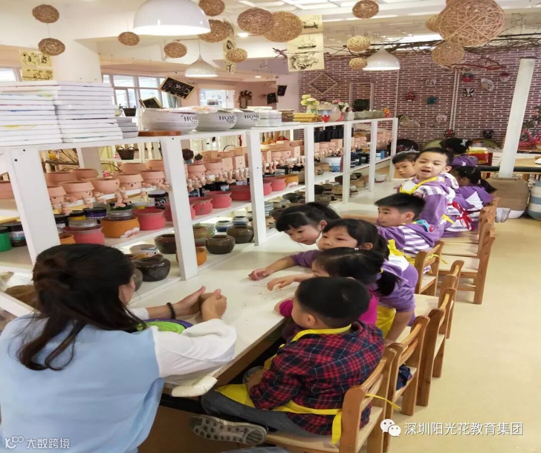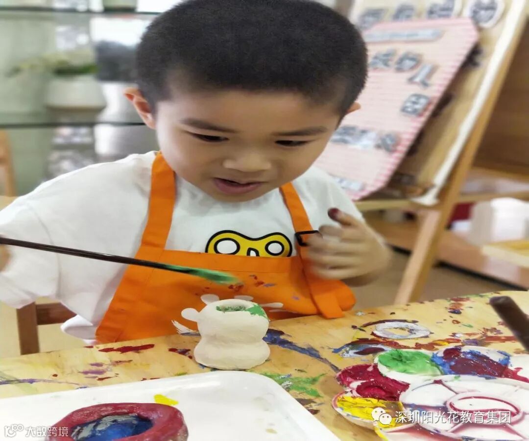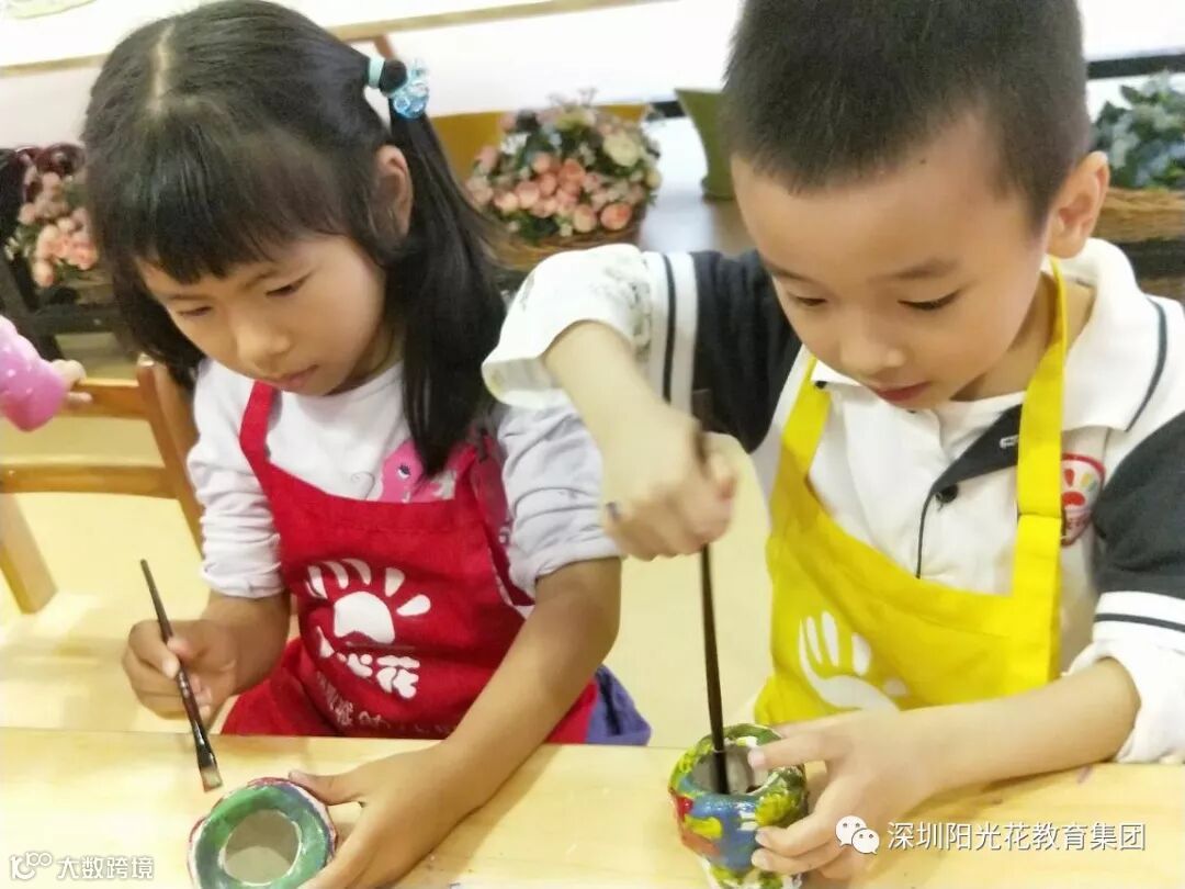 潮宝们来到充满艺术感的美工室,穿好围裙,像一个个小喜鹊。当然,不能忘记我们的口号哟!那就是“魅力阳光花,潮童行天下”耶!