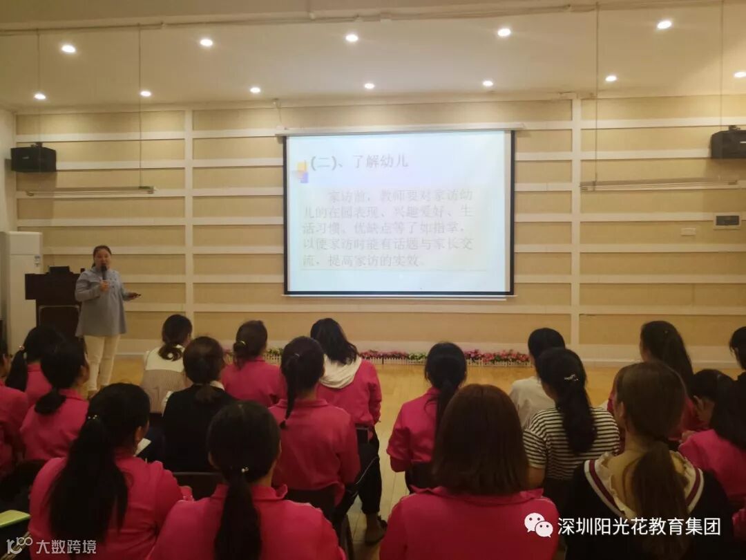 接着马园长开始了家访工作的培训,马园长从家访的目的、家访程序、家访要求、家访十要、家访十忌这五个方面,深入浅出的进行了详细的讲解。