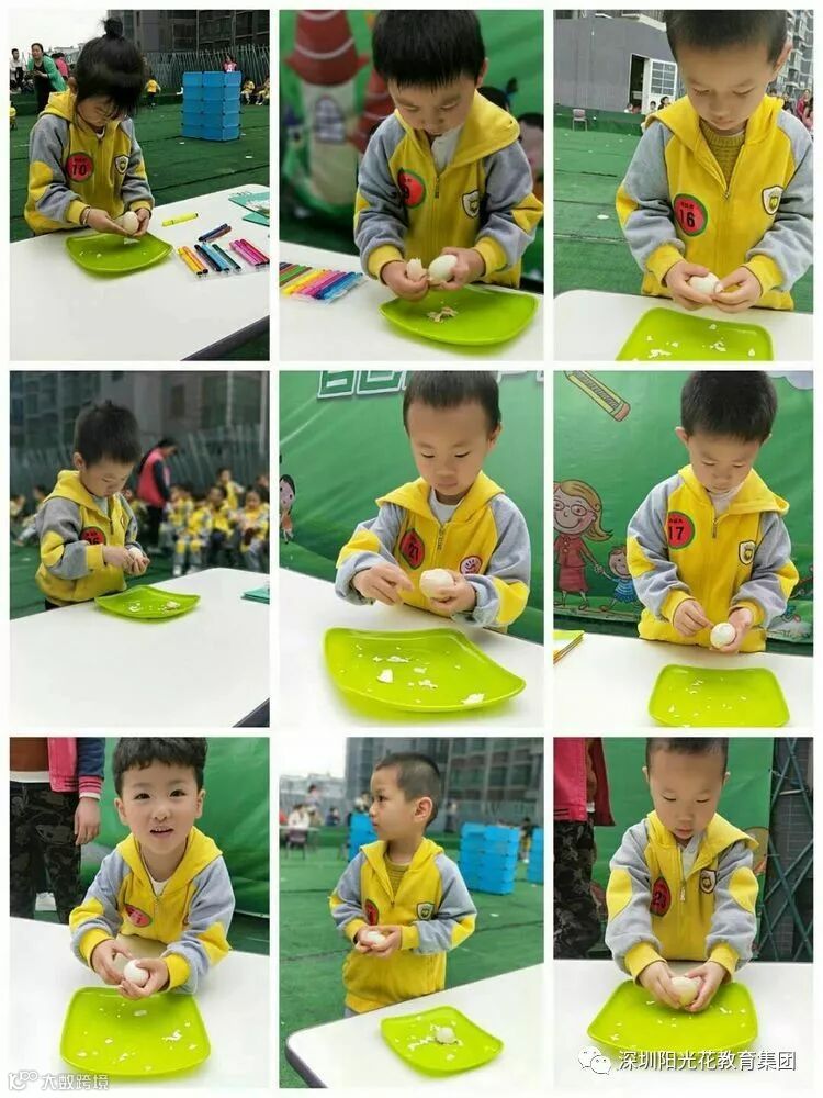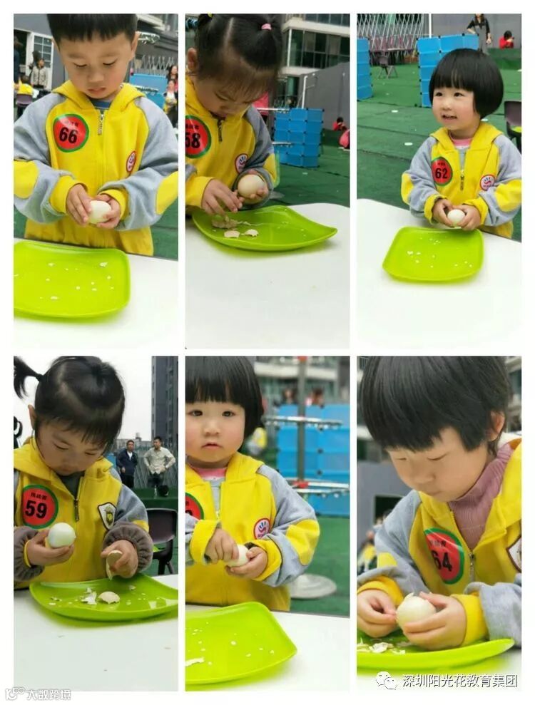 比赛进入最后一项,而我们的小朋友也临阵不乱。宝贝们都在认真的剥鸡蛋,争分夺秒,与时间赛跑。
