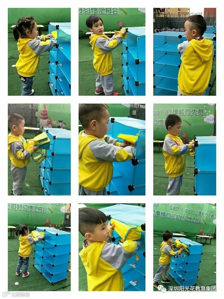 瞧,宝贝们手脚可麻利了,自己背书包、放书包,在没有老师的帮助下,他们一样可以做的棒棒哒!