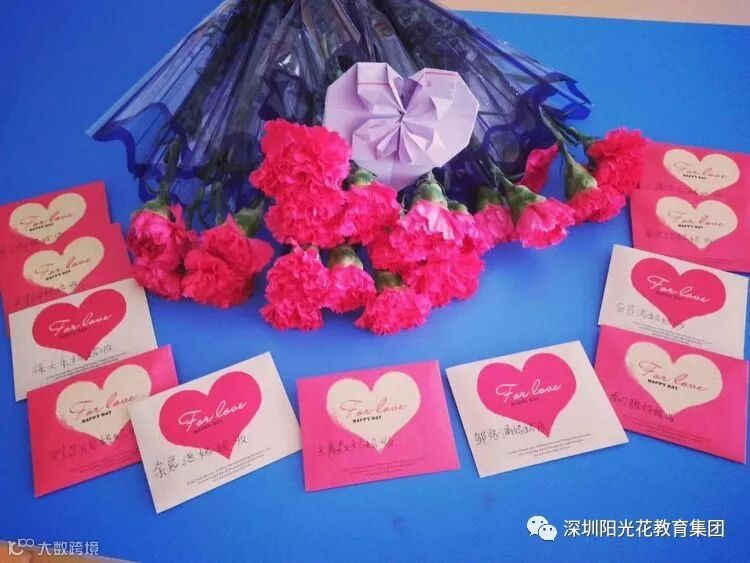 看!好看吗?一枝枝娇嫩的康乃馨,一封封画有爱心的小信封,那是孩子们的满满的爱,老师们的浓浓的情!