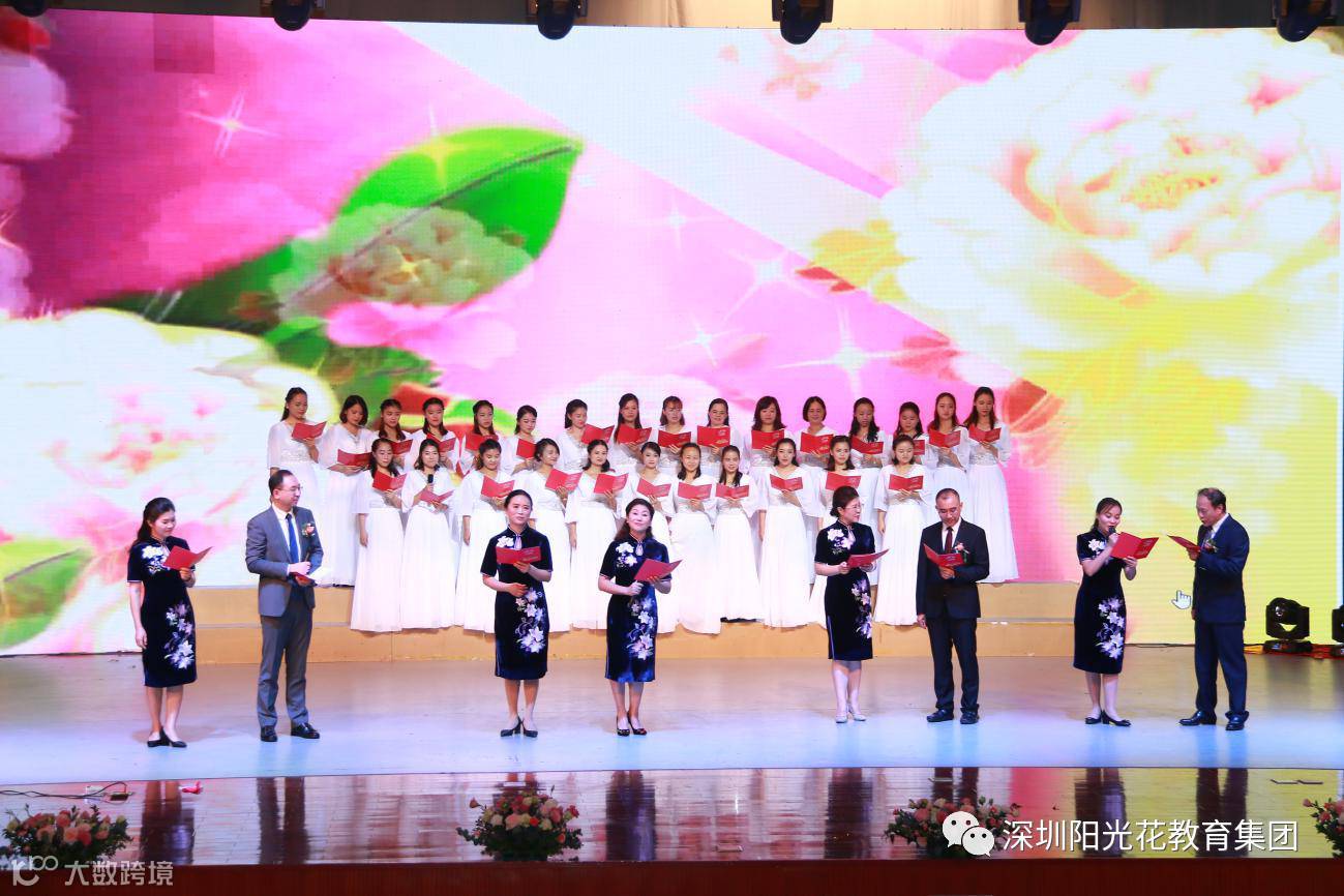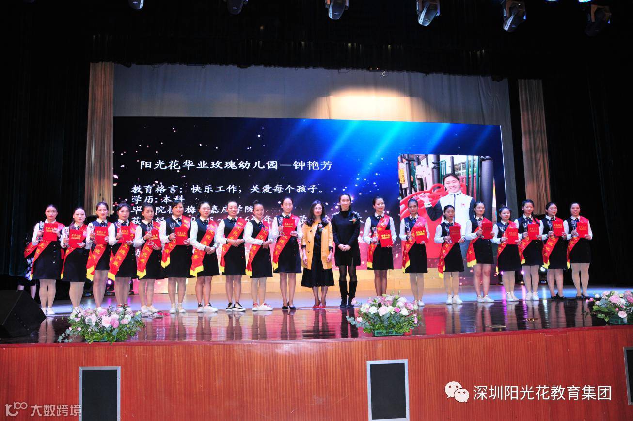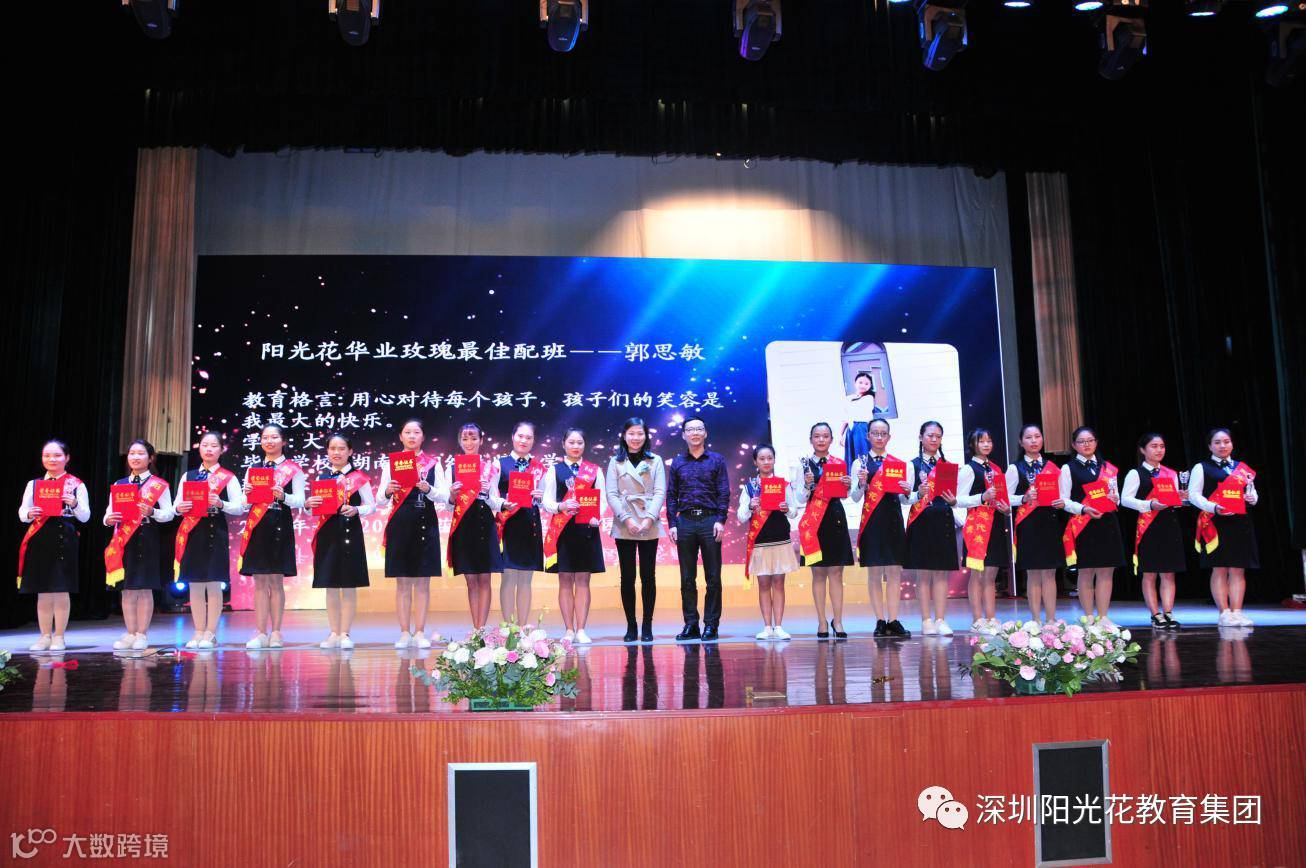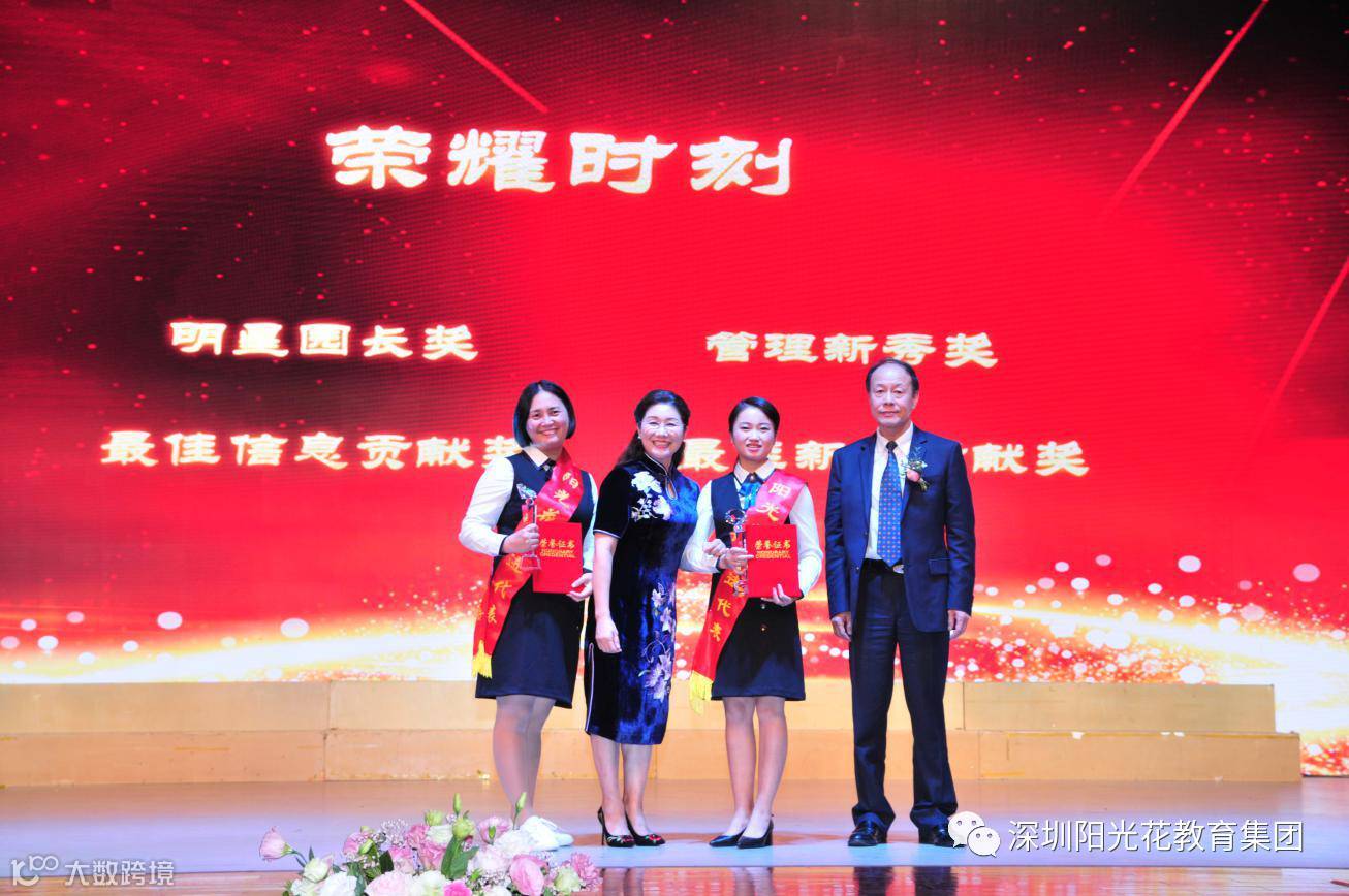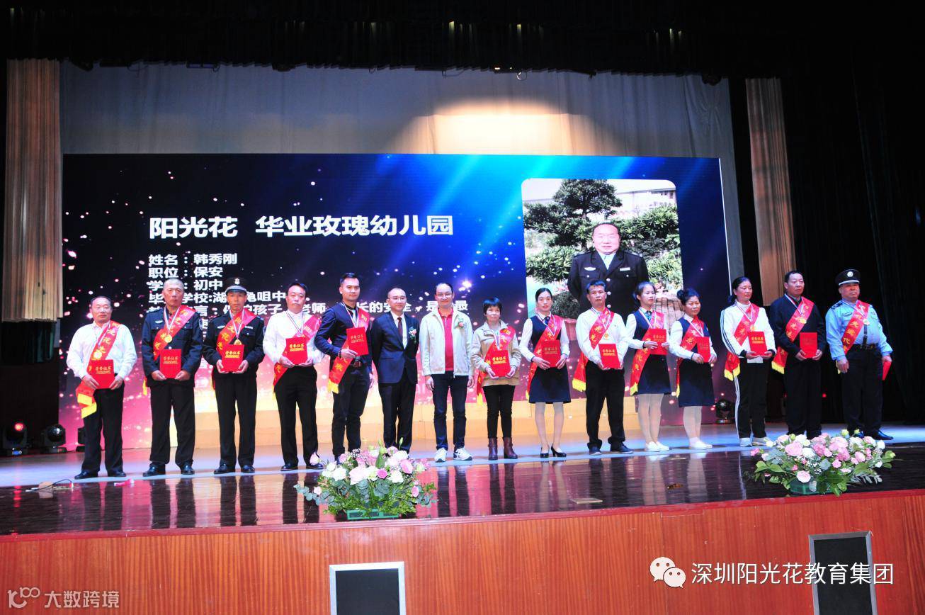2017年11月26日,深圳阳光花教育集团2017年度“阳光 梦想 传承 绽放”表彰大会在光明新区文化馆隆重举行,参加本次大会的有深圳阳光花教育集团董事会成员及深圳15家幼儿园全体教职员,出席嘉宾有华南师范大学杨宁教授、华南师范大学刘军副教授、光明新区文体教育局包小红副局长、深圳市学前教育协会王琪琪会长、深圳市学前教育协会钱芳秘书长、广东省幼儿园评估专家、深圳市名园长工作室主持人、莲花二村幼儿园园长王微丽园长、深圳市实验幼教集团刘红喜主任、广东省学前教育专业委员会讲师团团长深圳市苗圃工程名师孙晓昕园长、光明新区教育局民办教育行政管理干部田清蓉女士、光明新区学前教育专职督学梁小芹女士、光明新区学前教育专职督学陈秀英女士、光明新区明日之星幼儿园董事长邬燕平女士、宝安区教育局学前教育科副科长潘琳女士、宝安区幼教集团理事长总园长兴华幼儿园园长焦艳女士、龙华区教育局教育科学前教育办负责人钟文忠先生,人数达1000多人,声势浩大、场面壮观,本次大会由王清董事主持,共分为四个乐章进行。