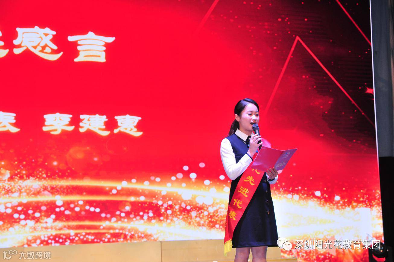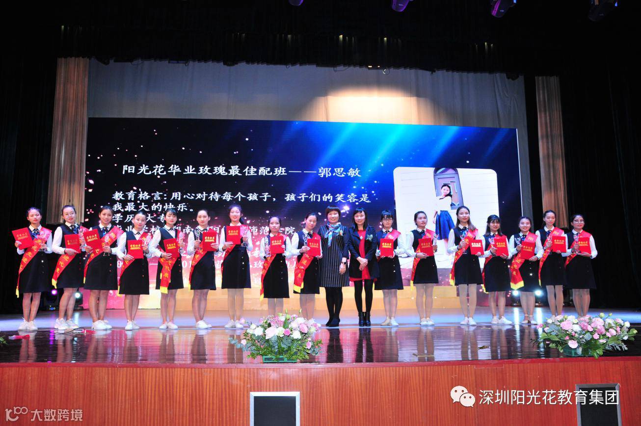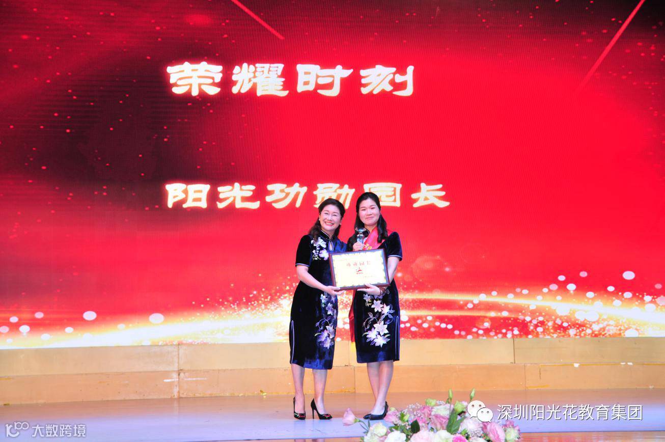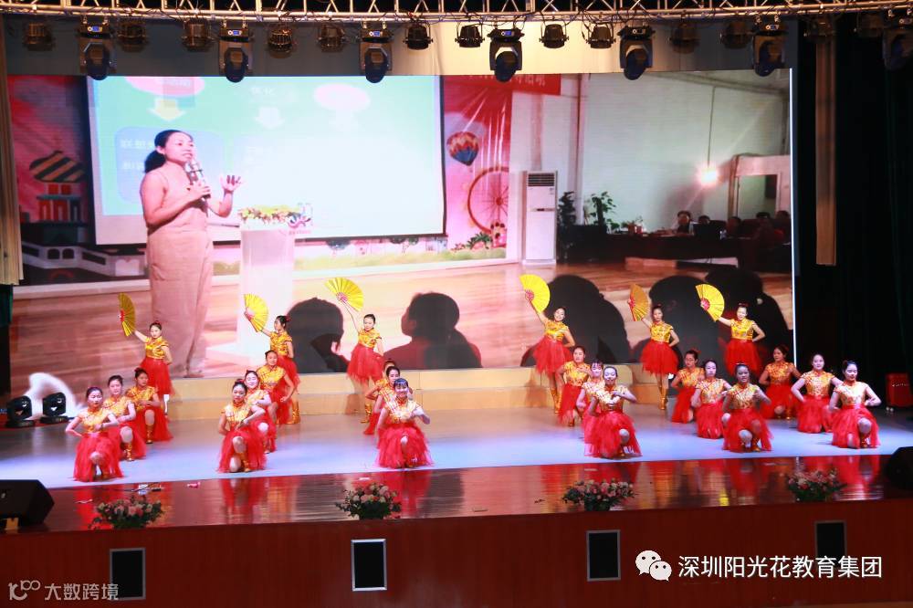 2017年11月26日,深圳阳光花教育集团2017年度“阳光 梦想 传承 绽放”表彰大会在光明新区文化馆隆重举行,参加本次大会的有深圳阳光花教育集团董事会成员及深圳15家幼儿园全体教职员,出席嘉宾有华南师范大学杨宁教授、华南师范大学刘军副教授、光明新区文体教育局包小红副局长、深圳市学前教育协会王琪琪会长、深圳市学前教育协会钱芳秘书长、广东省幼儿园评估专家、深圳市名园长工作室主持人、莲花二村幼儿园园长王微丽园长、深圳市实验幼教集团刘红喜主任、广东省学前教育专业委员会讲师团团长深圳市苗圃工程名师孙晓昕园长、光明新区教育局民办教育行政管理干部田清蓉女士、光明新区学前教育专职督学梁小芹女士、光明新区学前教育专职督学陈秀英女士、光明新区明日之星幼儿园董事长邬燕平女士、宝安区教育局学前教育科副科长潘琳女士、宝安区幼教集团理事长总园长兴华幼儿园园长焦艳女士、龙华区教育局教育科学前教育办负责人钟文忠先生,人数达1000多人,声势浩大、场面壮观,本次大会由王清董事主持,共分为四个乐章进行。