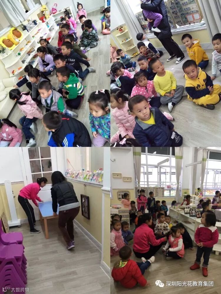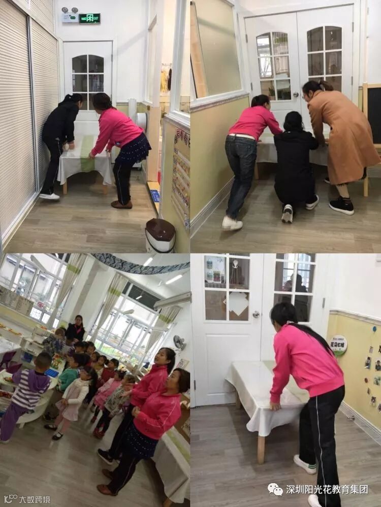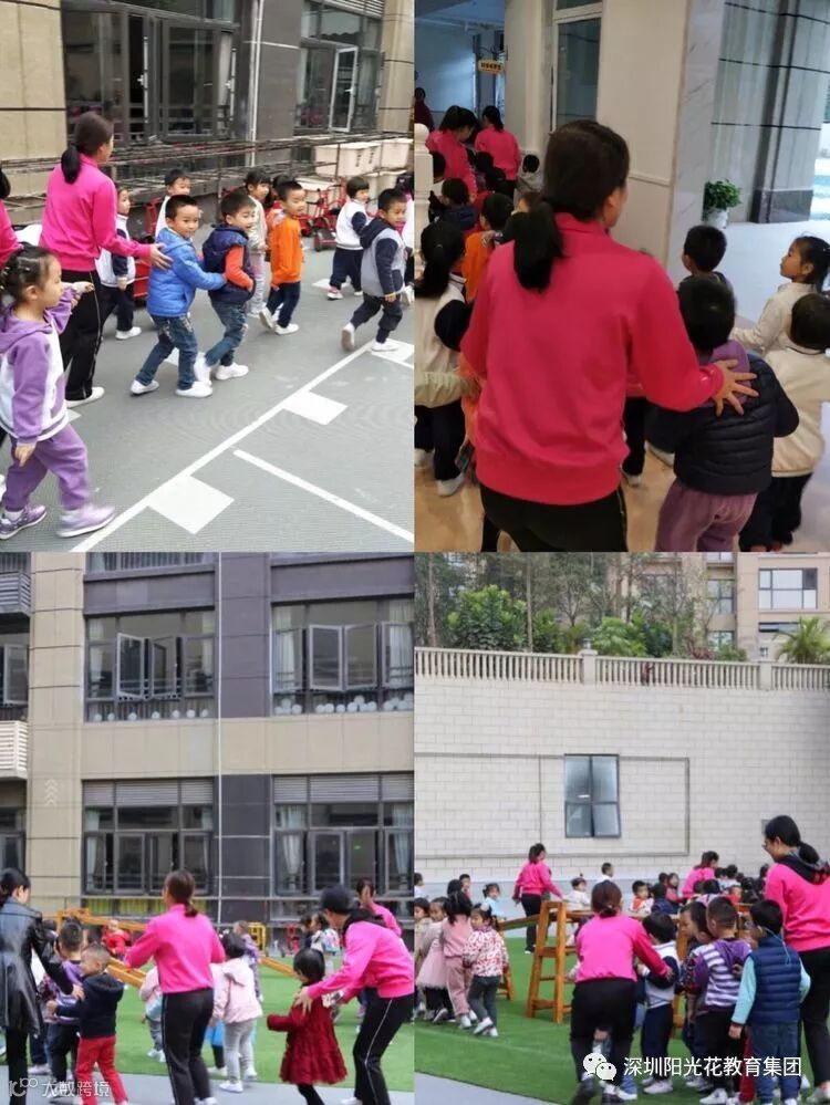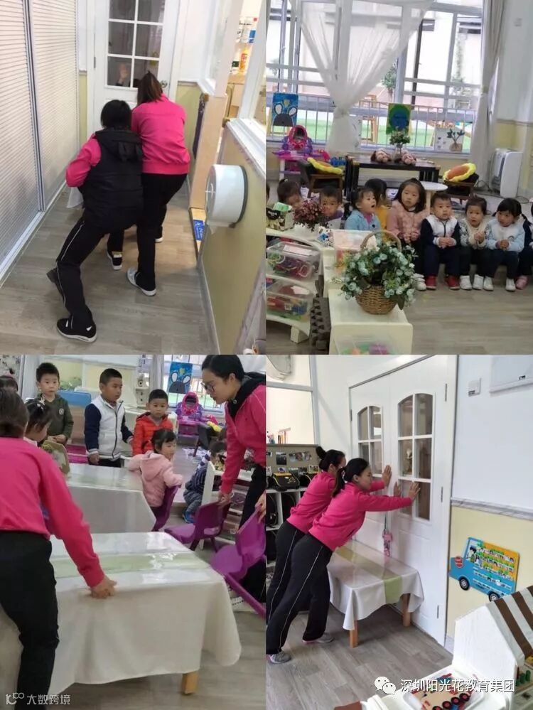 在室外游戏的幼儿在行政人员、各班教师和保育员的组织下,立即回到班级,保育老师将班级门窗紧闭,教师及时清点人数、用桌子抵住教室门做好防范。