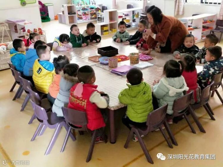 中二班的小朋友正在认真听彭老师讲解手工制作过程。