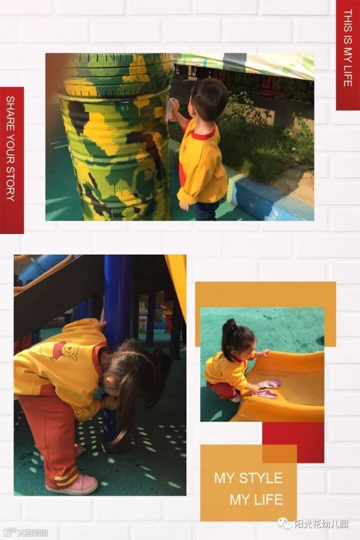 瞧瞧宝贝们多棒呀!有的捡起地上的垃圾、有的擦宣传栏、有的幼儿给社区擦桌椅,大家忙的不亦乐乎。劳动是最伟大的,是光荣的,没有劳动就没有这个丰富多彩的世界。虽然双手会变脏,但孩子们毫不在意,张张脸庞洋溢着快乐的笑容。