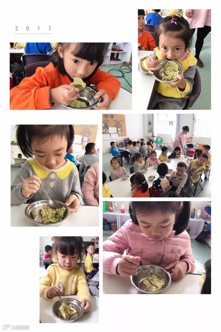 家长助教:吴格芊、周诗曼的妈妈一起协助老师共同为孩子们制作了香喷喷的蔬菜饼,小朋友们吃的特别开心哟。