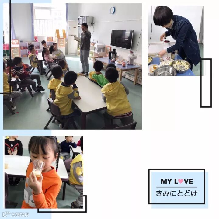在超市购买完水果后,我们的家长助教谢宇龙妈妈协助老师一起为小朋友榨新鲜的果汁,自己榨的果汁很好喝哦,快来品尝一下吧。