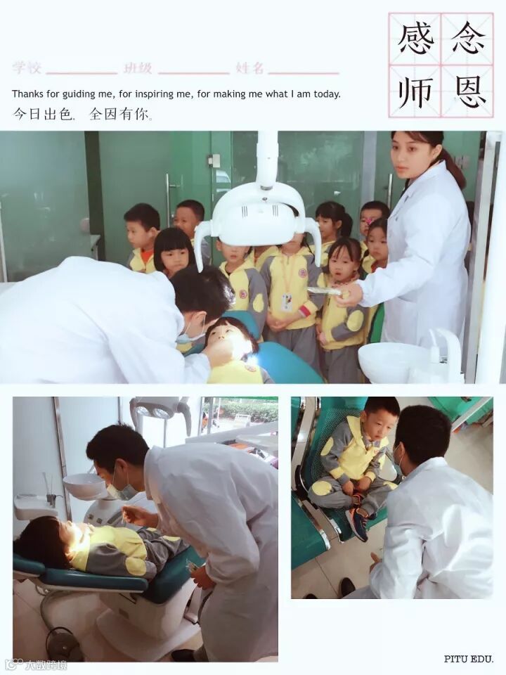 通过活动让孩子们爱上刷牙,知道保护牙齿的重要性,了解牙齿的构造及什么时候换牙和拔牙等口腔卫生护理知识。大大班小朋友今天上午来到了楚天世纪城小区西门综合门诊部,牙医叔叔对每一个孩子口腔都进行了检查并给出指导意见,孩子们非常配合,并学到了很多牙齿护理小知识。