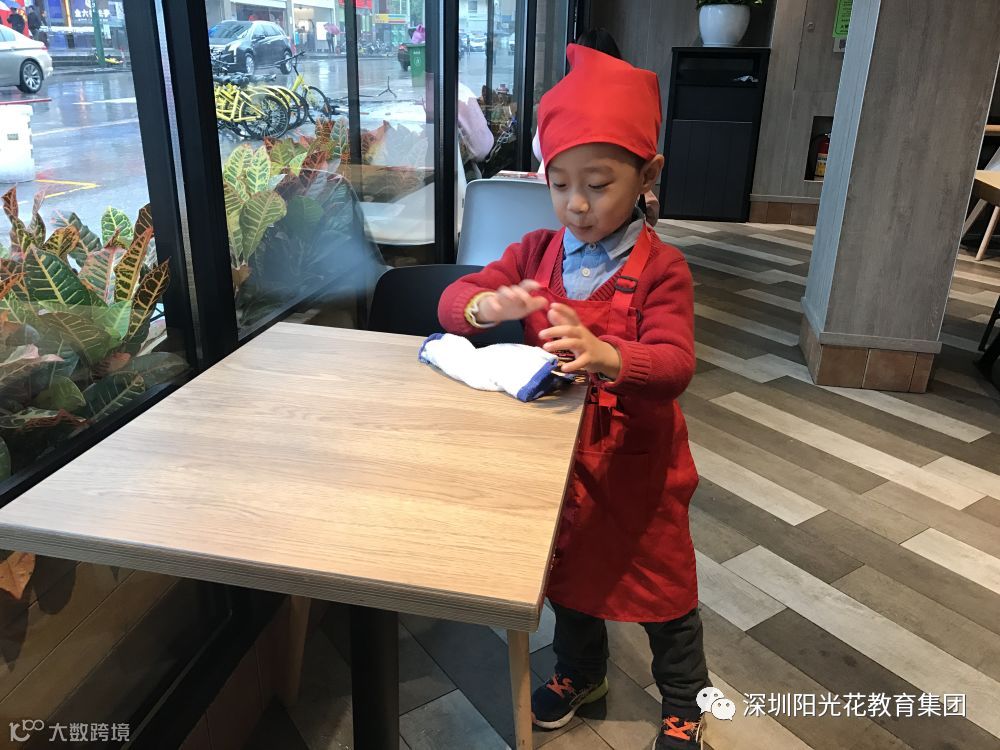 潮宝们非常的有礼貌与客人问好,有的动手帮忙收拾餐盘,有的擦桌子整理椅子等,潮宝们都有模有样,表现的非常棒!