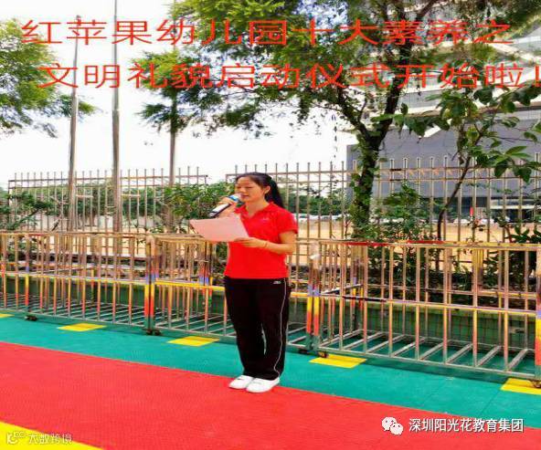2017年9月11日,红苹果幼儿园全体师生聚集在操场进行了十大素养之文明礼貌月启动仪式。