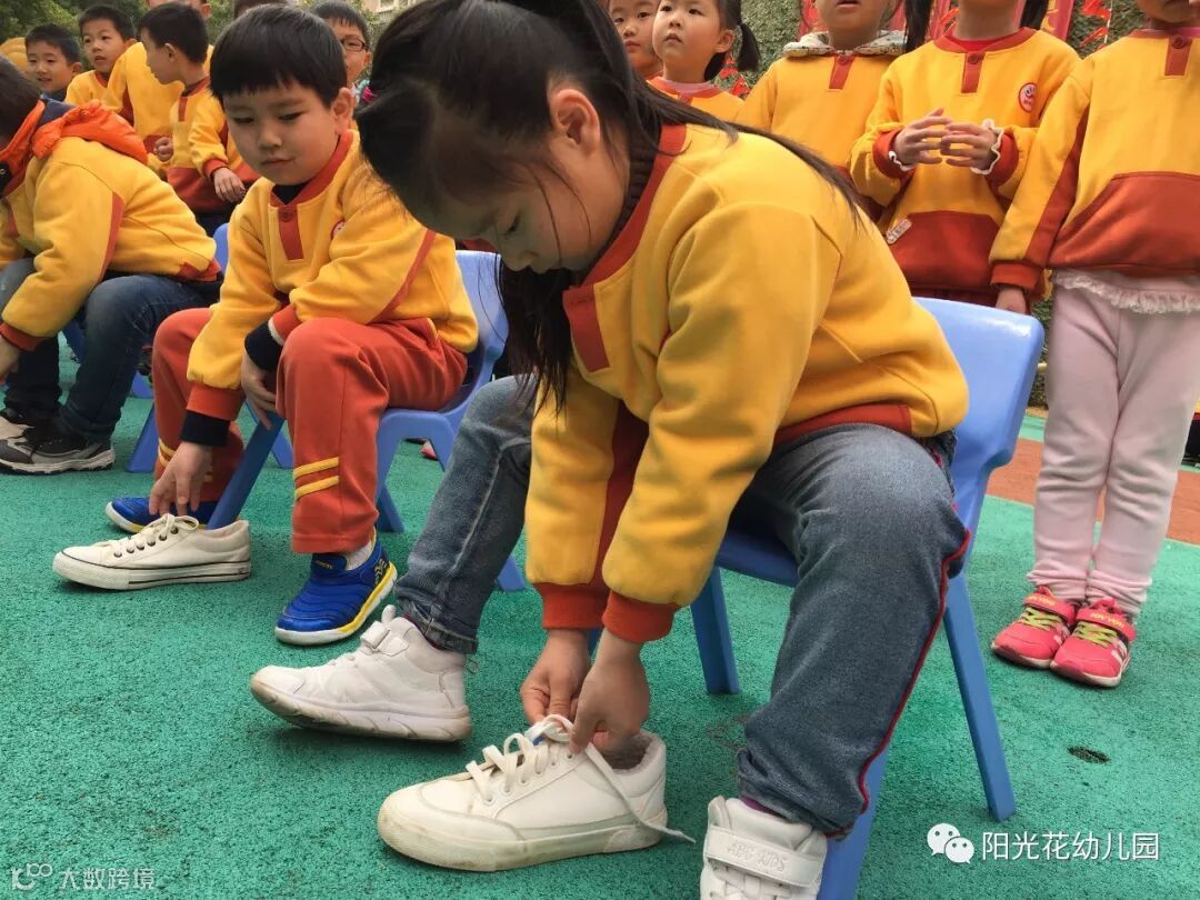 系鞋带环节,小选手们能按照正确的顺序系好鞋带哦!