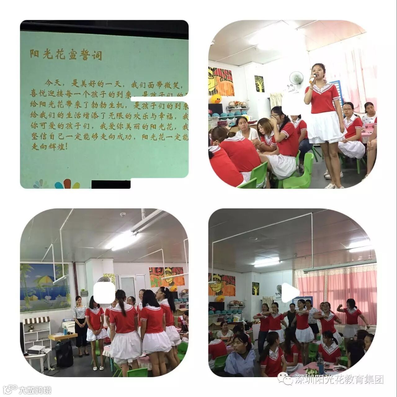 活动之初,教师们就分成了五支“战队”,设计自己的队名队歌,喊响口号,一个个摩拳擦掌,一场没有硝烟的战争即将打响!一曲充满活力和燃点的开场舞“超越就现在”奏响了特训营的号角,尽情舞动,全情投入,带动着全场气氛达到了高潮。李园长以她风趣幽默地说话方式,成功吸引了教师们的关注!为老师们详细解读了幼儿园一日生活。幼儿园作为学前教育机构,担负着教育幼儿和为家长服务的双重任务。而幼儿的发展在极大程度上需要家园相互沟通,积极寻找教育的最佳切入点。在轻松愉快的气氛中,严园长开始了“幼儿园规章制度”的培训。在学习中,全体教职工认真地做好笔记,并对一些规章进行了讨论,大家都表明要严格遵守规章制度,以身作责,将工作做到最好。此次学习进一步规范了全园教职工的责任意识,在今后的工作中,金色未来幼儿园全体人员将严格贯彻执行规章制度,以主人翁意识为提供给幼儿一个安全健康的环境而不懈努力!