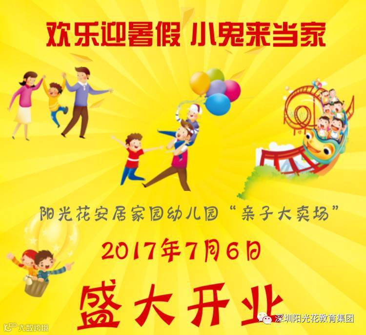 为了给小朋友提供一个自主交易平台,让小朋友用家中的玩具、书籍等物品与其他小朋友进行买卖,在促进家园合作,增进亲子感情的同时,初步培养小朋友的价值观及规则意识。培养具有良好综合素质的好宝宝。2017年7月6日,阳光花安居家园幼儿园隆重举办“欢乐迎暑假 小鬼来当家”亲子跳蚤市场活动。