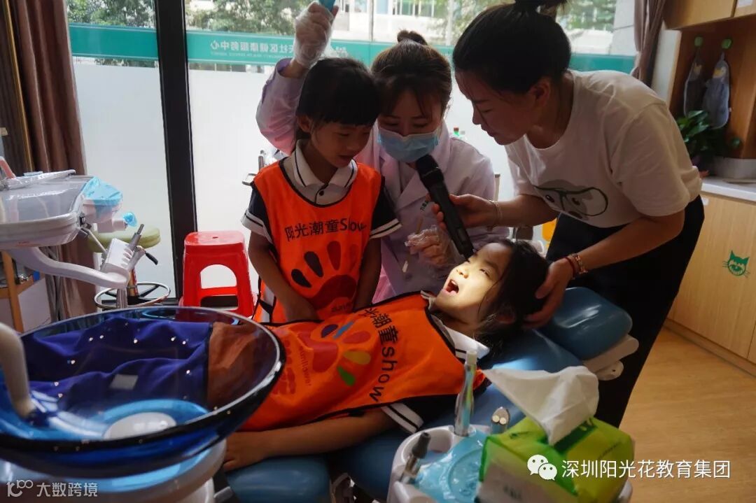 紧接着,我们跟着医生叔叔的脚步,一起来到了潮宝们最感兴趣的口腔诊室,走进口腔科,由我们美丽的口腔科医生王医生为我们介绍了检查牙齿的基本工具,并讲述了保护牙齿的基本知识,而且带领着潮宝们一一进行了“小医生”“小病人”的体验活动。