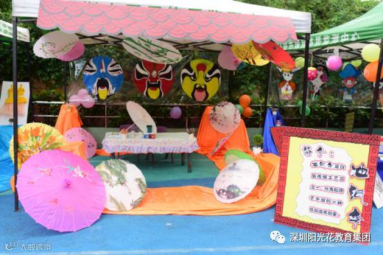 活动现场氛围热烈,一进门便是老师们精心布置的民间艺术展区,水墨画馆、油纸伞馆、戏剧馆、刻纸馆,都让家长朋友们赞不绝口。