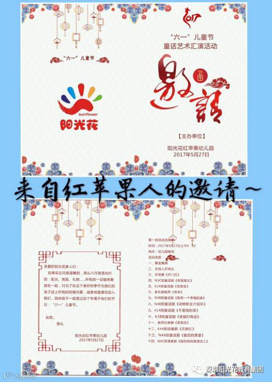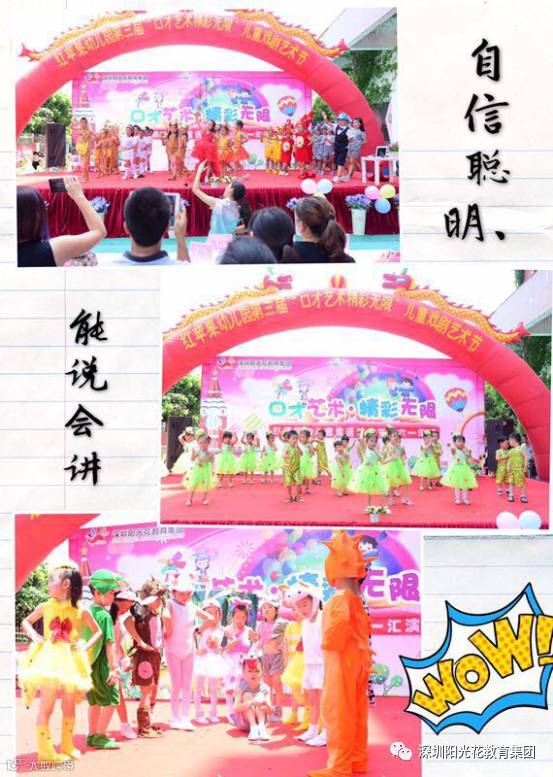 如果说五月是温馨的,那么六月就是灿烂的,阳光、笑脸、礼物都将聚在一起。口才艺术,精彩无限!5月27日,伴着童话艺术节的脚步,我们所有小朋友和爸爸妈妈欢聚一堂,迎来了阳光花红苹果幼儿园第三届儿童戏剧童话艺术节暨六一汇演活动。