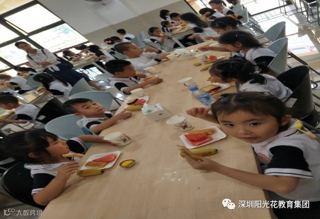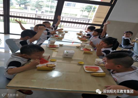 在活动结束后许多幼儿表示,非常羡慕小学生活,想早点成为小学生。网球课结束后弘金地的老师们为小朋友们准备的丰盛的点心水果餐。