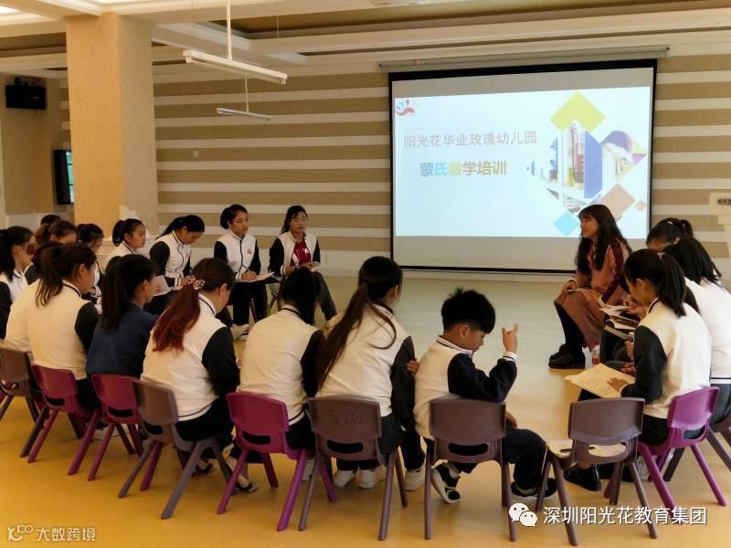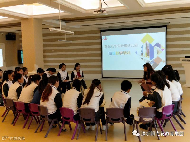 深圳阳光花教育集团为了提升教师蒙氏数学教学质量,2017年12月14日上午很荣幸邀请到了亿童幼教钟老师和黎老师到我园培训。