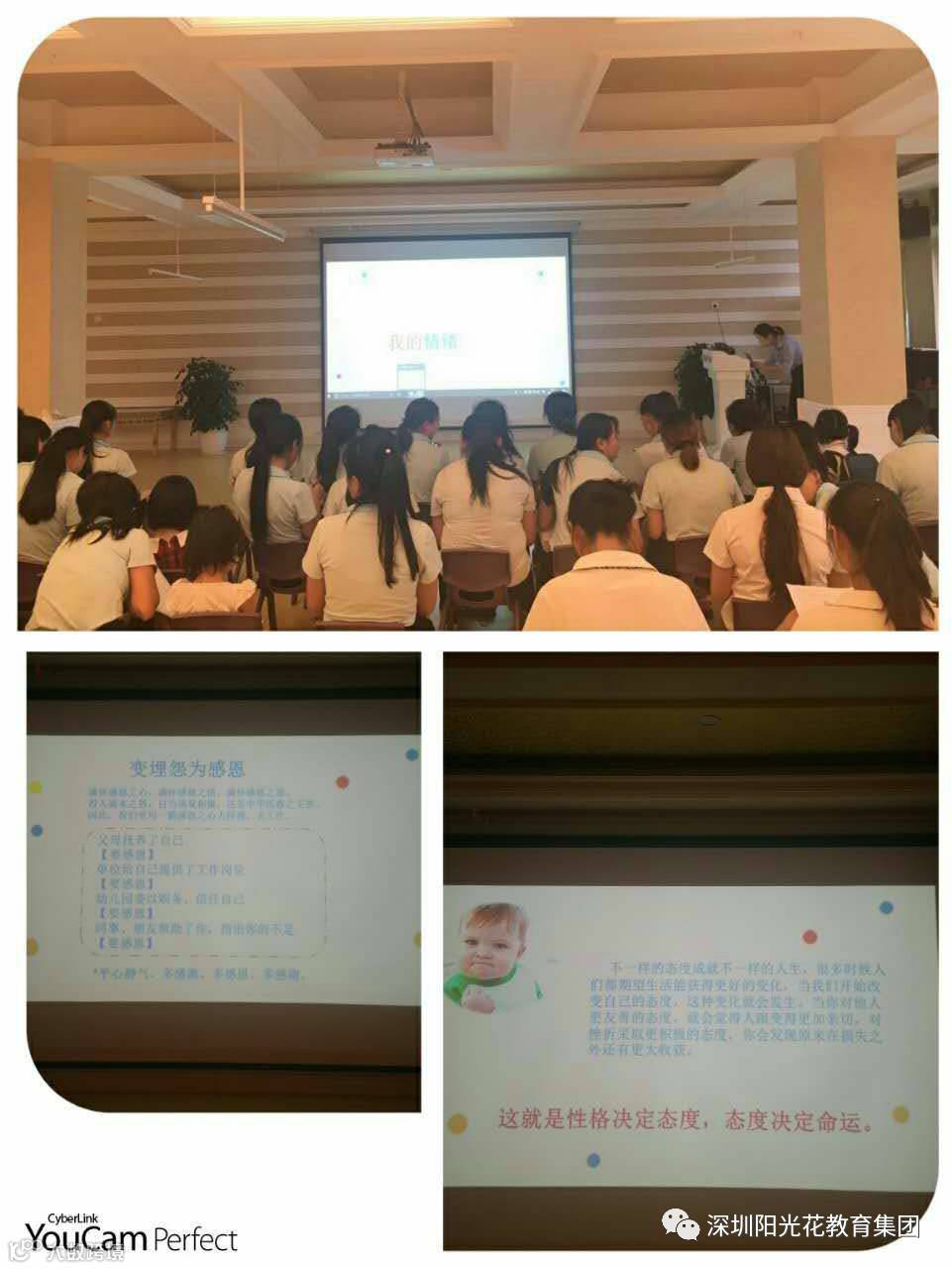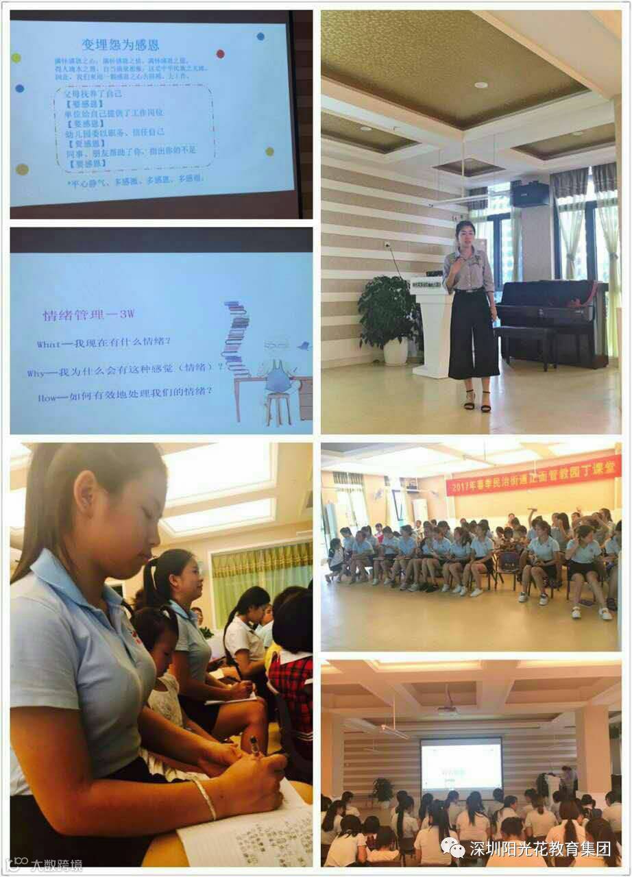 2017年5月11日晚上,杨园长给我们带来了《我的情绪我做主》培训。通过本次培训让老师们知道了控制情绪的重要性。积极的情绪对人的身体和学习有积极影响,可以促使我们健康成长。消极的情绪对人的身体和学习有消极影响。情绪是可以调节的,也是可以控制的,所以我们要习惯性地觉察自我情绪的变化,并积极主动地调适情绪。当我们遇到问题的时候可以换种方式来看待事情,不一样的态度成就不一样的人生。从现在开始改变自己的态度,你会发现有不一样的收获。性格决定态度,态度决定命运。让我们用一颗感恩之心去拼搏、去攀登,用平静的心多感激、多感恩、多感谢在你身边陪伴和帮助你的人,让我们的生活处处洒满阳光!