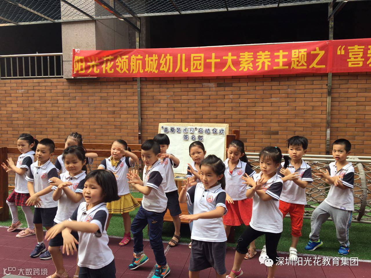 阳光花领航城幼儿园在2017年5月5日开展了十大素养主题之“喜爱艺术月”的开幕式。