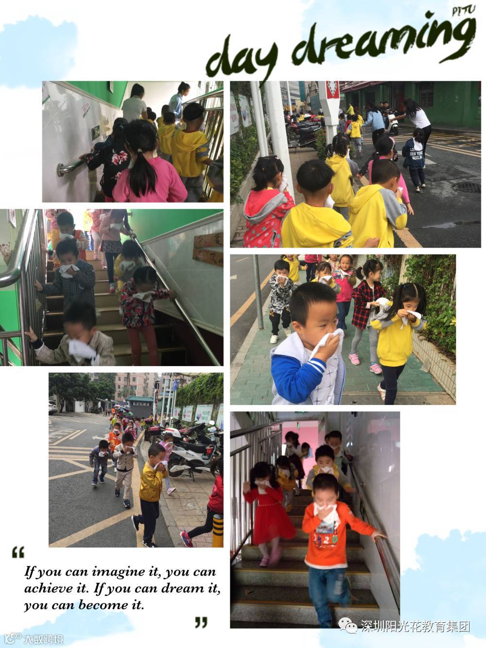 2017年11月9日上午,在全国消防日这天,阳光花金色阳光幼儿园对全园师生进行了安全疏通消防演练活动。目的是为了让孩子从小培养消防意识,学会自我保护,遇到火警懂得快捷、有效的逃生的办法。