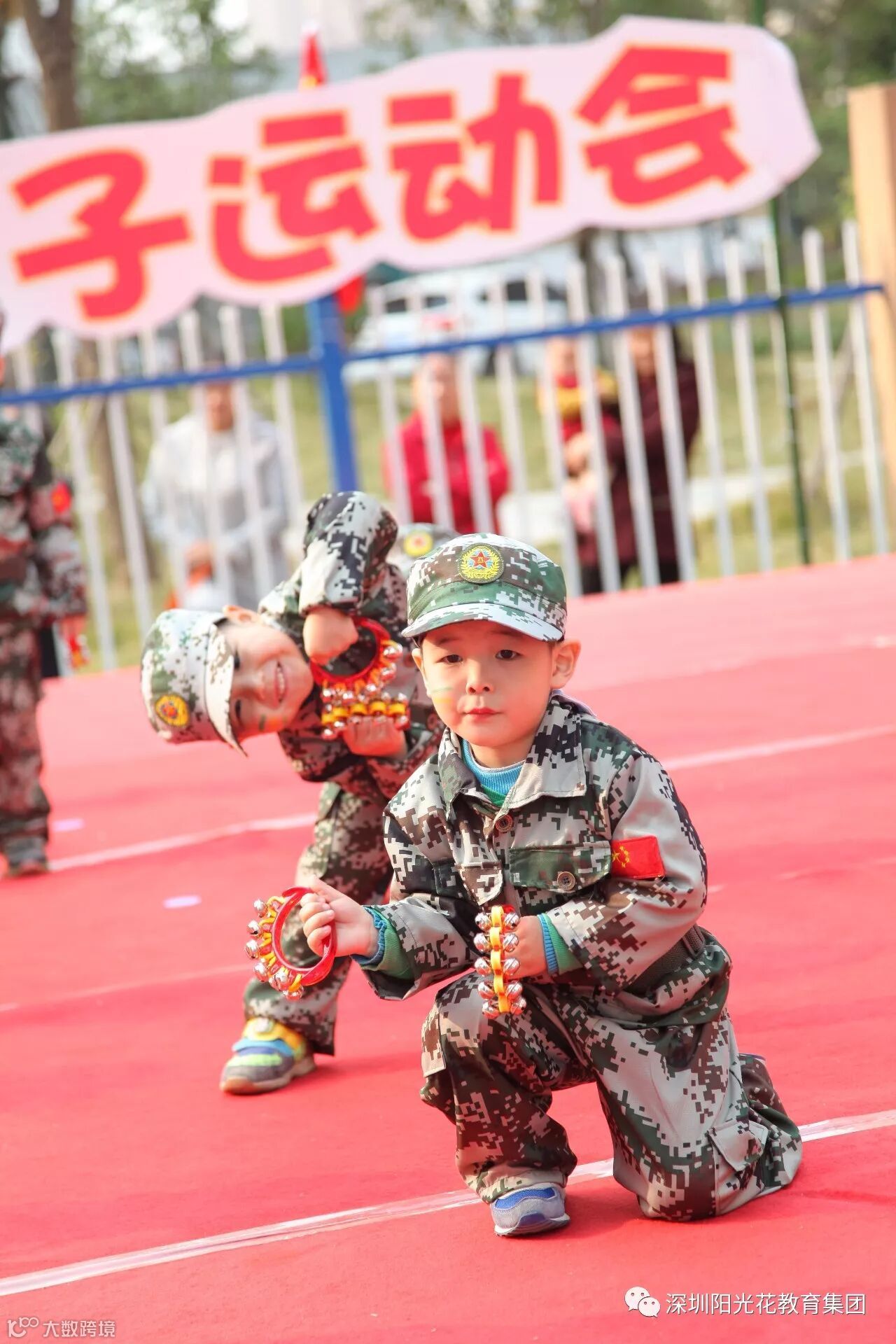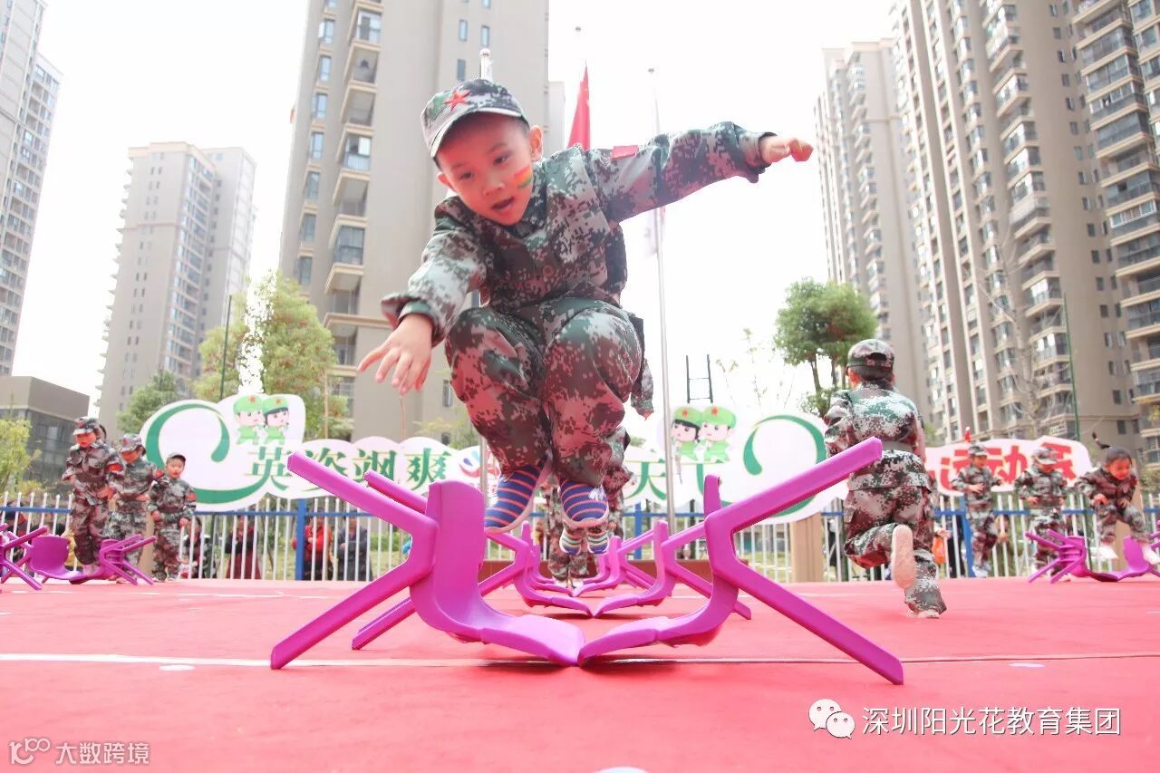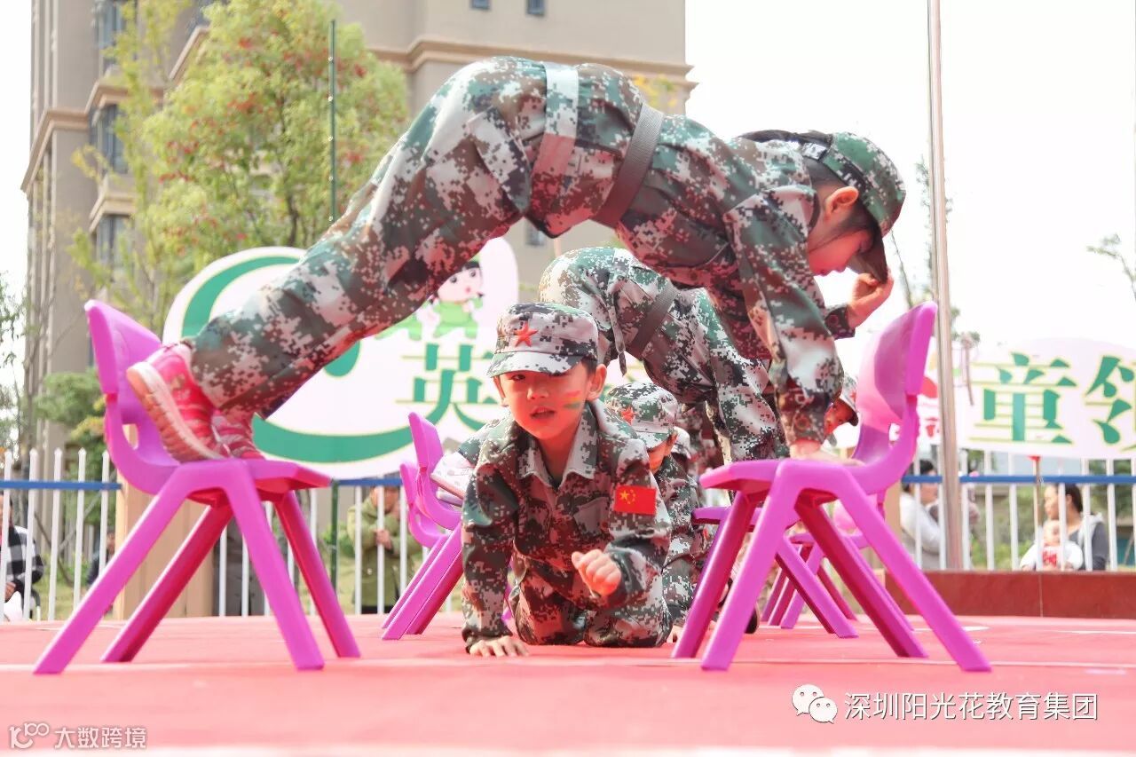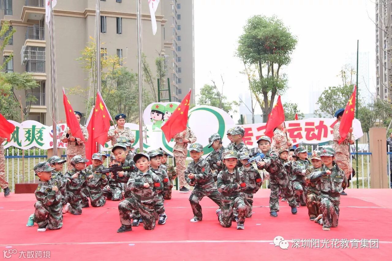 2017年11月10日——11月11日阳光花·江欣幼儿园在阳光花·鲤跃龙门幼儿园开展了两场以“英姿飒爽 童领天下”为主题的军旅亲子运动会。