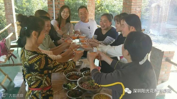 忙忙碌碌中,时间转眼就过去了,大家忙活了这么久,美味的大餐就在眼前,馋的大家直流口。尽管这样,开餐前大家还不忘先喊一下自己班级的口号: