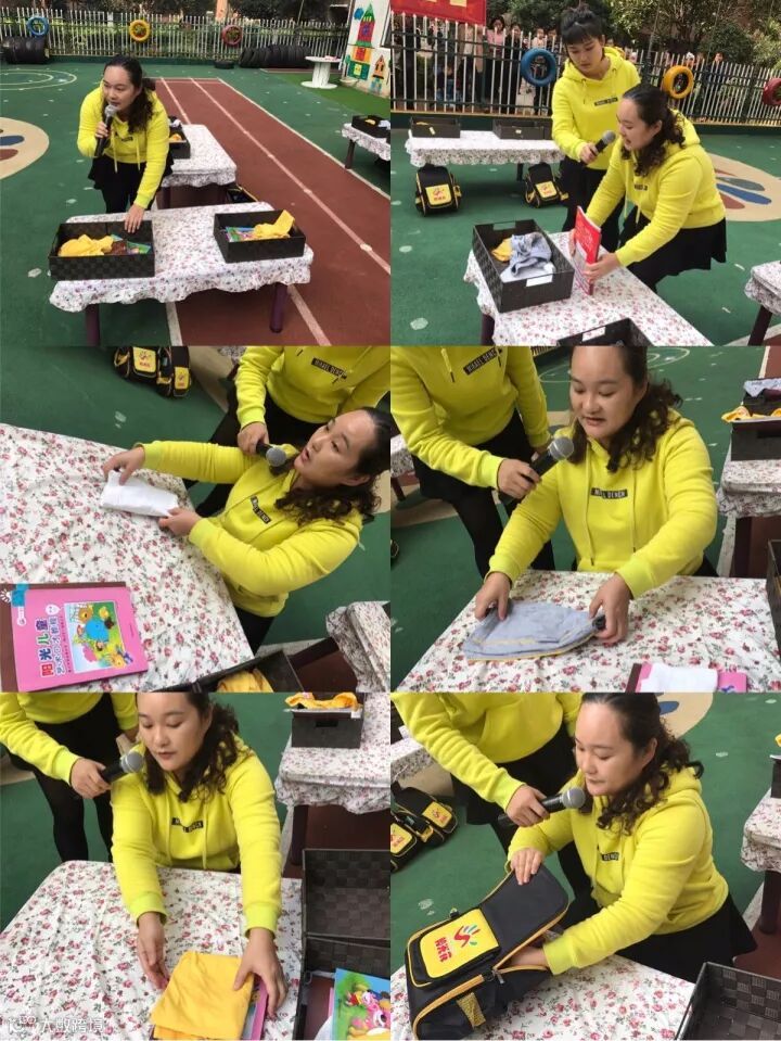 比赛规则:由许老师进行示范,先整理书本,在叠汗巾、衣服、最后放入书包。