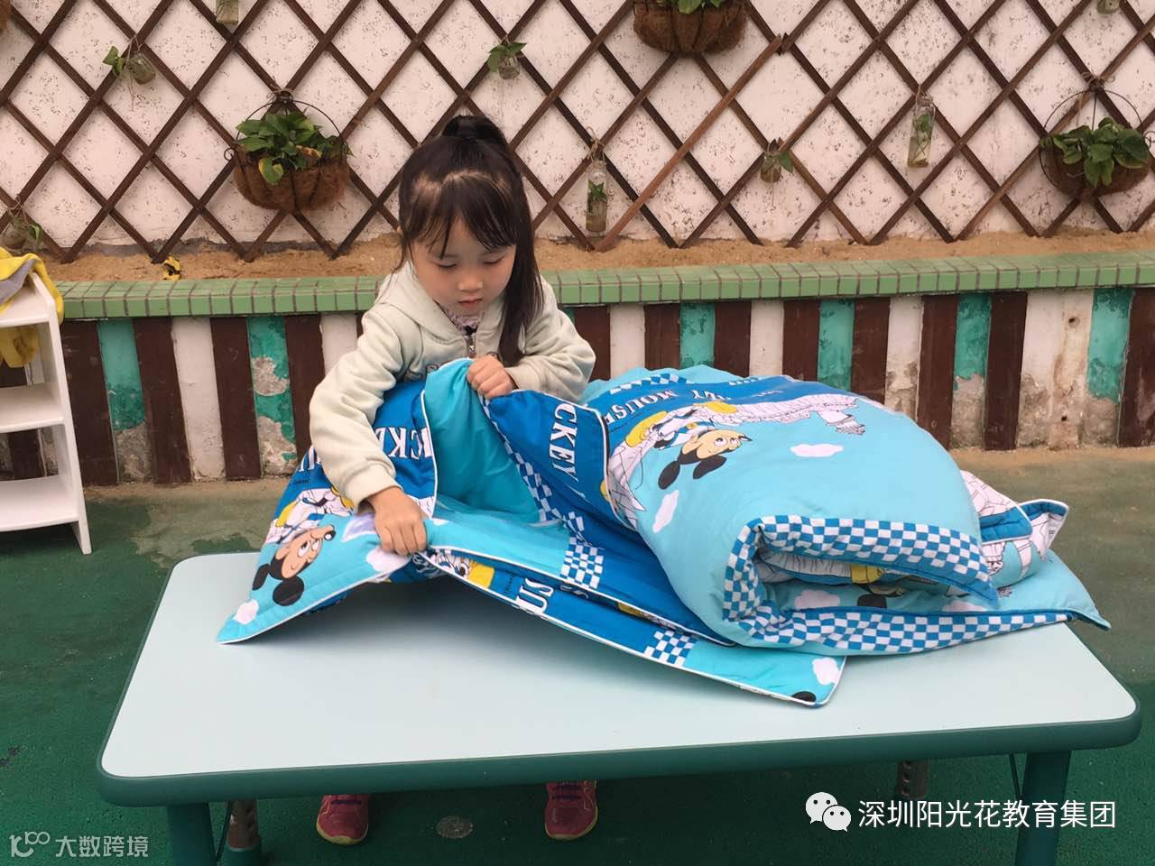 大班的老师们提前为孩子准备好了带纽扣的衣服、被子、书包、园服等物品。活动流程如下:1、主持人开场白。2、师幼问题竞答。3、首先进行的是大大班孩子们叠被子比赛,其次是大班孩子穿带纽扣衣服、整理书包比赛,最后是大大班孩子叠衣服比赛。小朋友们在比赛中特别的积极和认真,速度也比平时快了许多,看小朋友那认真的模样,老师心里也暖洋洋的。觉得每个班的小朋友个个都是生活自理小能手。比赛得胜的小朋友,我们也为他们颁发了奖状和小雨伞,以此作为对孩子的鼓励!