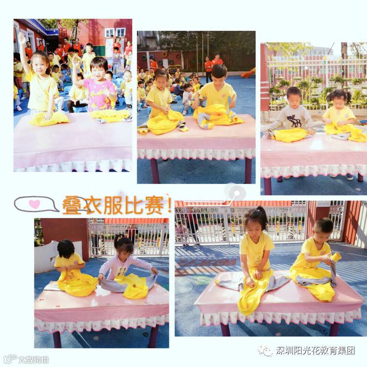 在这秋高气爽,阳光明媚的早上,金色童年幼儿园迎来了大班组“自理能力大比拼”活动。活动还没开始,我们的义工妈妈们已经提前来到幼儿园进行准备工作了,活动即将开始了,首先是主持人致开场词,紧接着就是大七班的小朋友们带来的开场律动《我真的很不错》,其次,是家长代表致词,接下来就是小朋友们期待已久地大比拼了,瞧!我们的小选手们各个整装待发,第一项是夹玩具比赛,孩子们通过用筷子夹玩具,锻炼了手部协调能力,瞧!小朋友是不是很棒呢!不一会儿就夹到好多玩具!第二项是叠衣服比赛,在主持人的示范后,小选手们拿起衣服,麻利地叠起来,“耶,我叠好了!”在台下观众们的加油呐喊声中比赛进行到了第三项,刷牙大比拼,“洗刷刷,洗刷刷,我的牙齿白又白”,刷牙比拼中,孩子们知道了正确刷牙的方法以及刷牙的重要性,接下来是“叠被子比赛”,孩子们最喜欢的就是剥桔子比赛了,紧张而激烈的气氛,使得小选手们各个都在争分夺秒地进行比赛,“老师,我们剥好了!”随着一阵阵的“欢呼声”,我们的活动也接近了尾声,通过本次的自理能力大比拼,孩子们不仅有了自己的事情自己做的意识,更加提高了孩子们的动手操作能力,增强了孩子们伙伴间的团结合作能力!