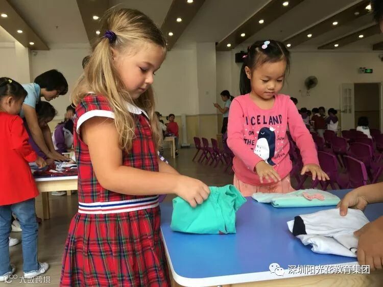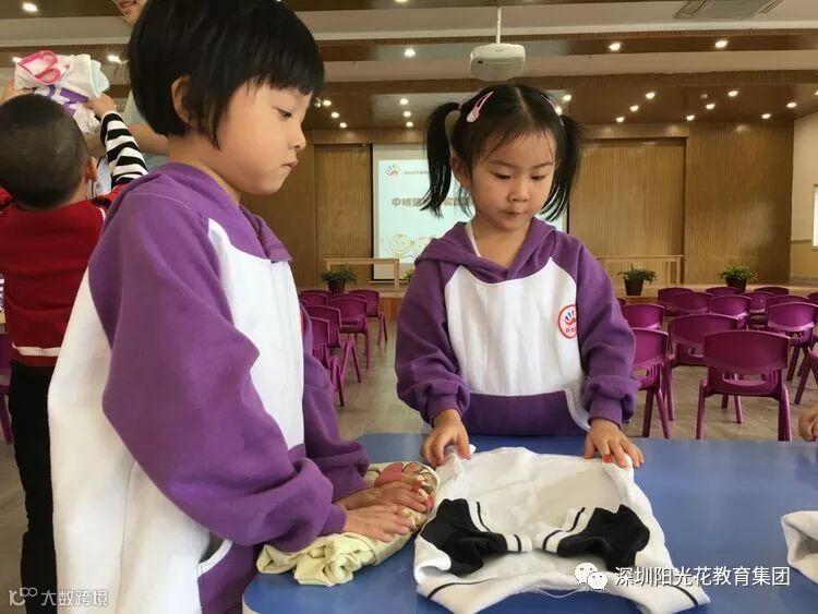 为了提高幼儿的自理能力,帮助幼儿养成良好的生活卫生习惯,2017年10月19日上午阳光花中海锦城幼儿园中班组开展了社会实践活动――我会叠衣服。