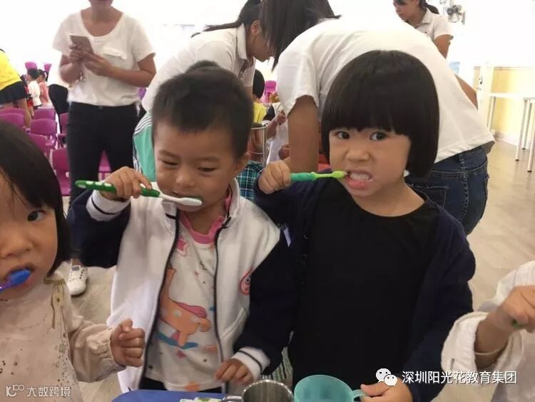 伴随着《刷牙歌》的节奏,孩子们认真实践着,有愉悦欢快的气氛下,掌握了正确刷牙的方法。