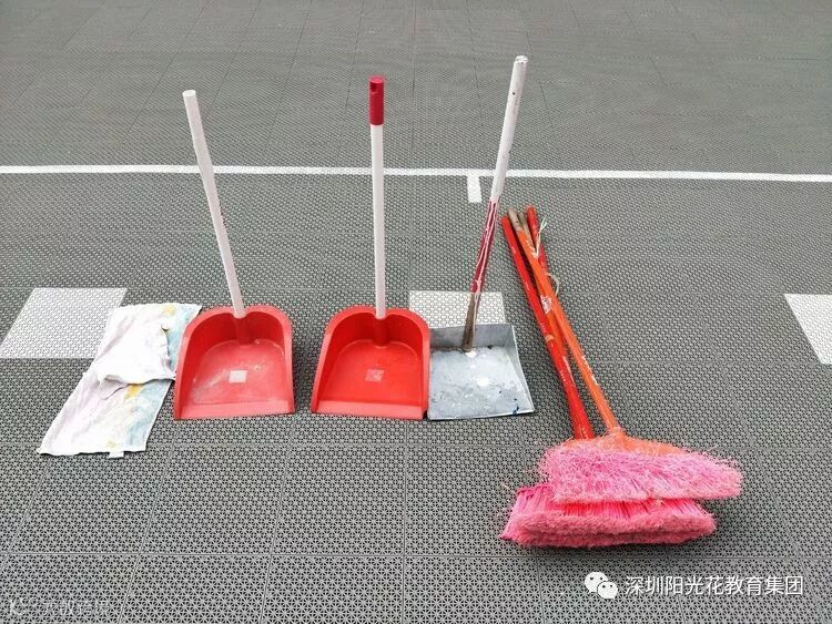 我们准备了扫把,垃圾铲,抹布还有垃圾袋,开始了我们的实践活动!
