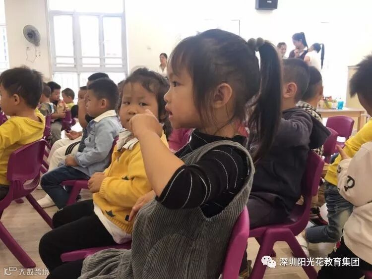 瞧,老师边讲解边示范刷牙的动作,小朋友们学的很认真哦。