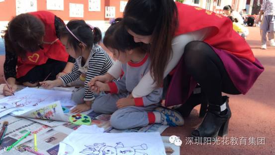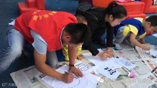 涂鸦这种绘画形式对于幼儿园的孩子来说是一种游戏,同时也是一种轻松愉快的活动。在这个阳光明媚的日子里,阳光花金色童年幼儿园大班组的小朋友在2016年11月4日上午开展了“我爱运动—亲子手绘T恤”活动.