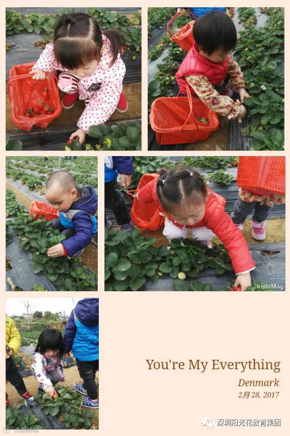 2017年2月28日红太阳2月份生日的小朋友和老师来到了美丽的大自然中,和香香甜甜的草莓来了一个美妙的约会,宝贝们认真地挑选草莓,嘴里一直念叨着:我要找红红的草莓,幼儿园集体生日会的举办,既能激发幼儿对集体生活的无比乐趣,让孩子们感受到幼儿园大家庭的温馨,又能让孩子学会与同伴分享自己的快乐。温馨、活泼的生日会细节将会在孩子们的成长历程中留下美好的记忆。让我们一起去看看孩子的活动的精彩瞬间吧!