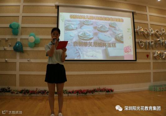 为了给孩子们留下生日的美好回忆,与小伙伴一起庆祝生日,阳光花领航城幼儿园于2017年5月18日开展了以“自制蒂芙尼纸杯蛋糕”为主题的集体生日宴会活动。在活动中孩子们一同跳舞,一起唱起生日快乐的祝福歌,共同吹灭生日蜡烛,同享生日蛋糕、点心与水果,欢歌笑语在生日会现场回旋。