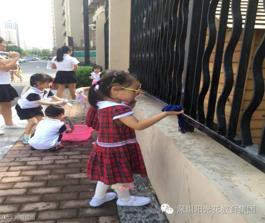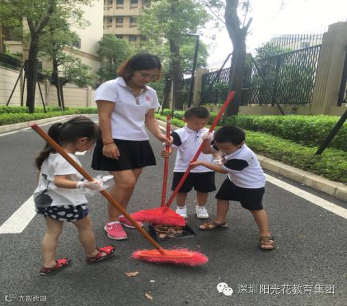 “习惯决定孩子的命运。”习惯的力量是巨大的,人一旦养成一个习惯,就会不自觉地在这个轨道上运行,孩子小时是培养习惯的最佳时期金域缇香注重孩子们习惯的培养,生活卫生好习惯让宝贝们养成了爱卫生的好习惯,为了让孩子更好的体验劳动的辛苦,从而学会爱护环境、讲卫生!我们从周围的环境卫生开始,带着宝贝们走出幼儿园,做环保小卫士。