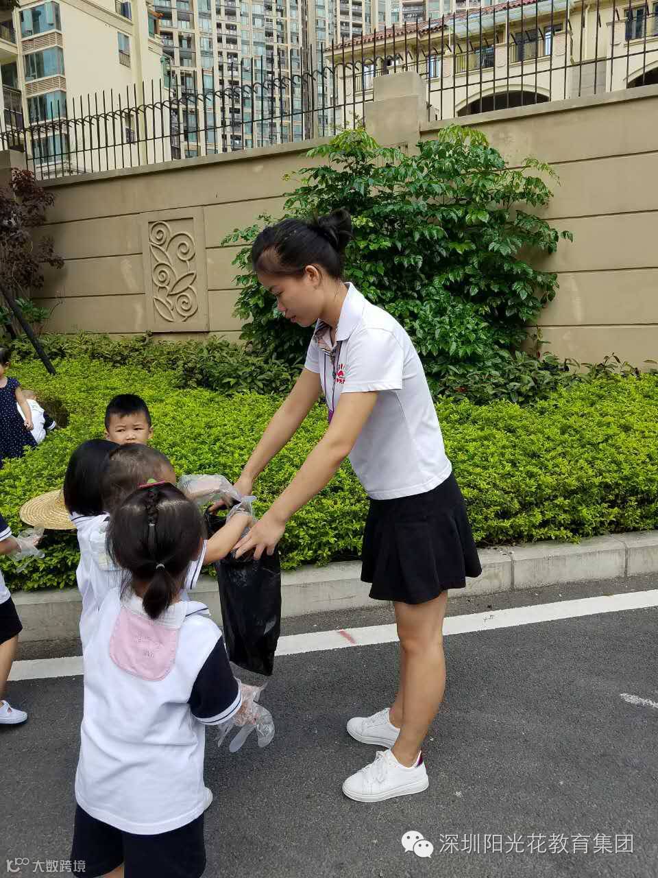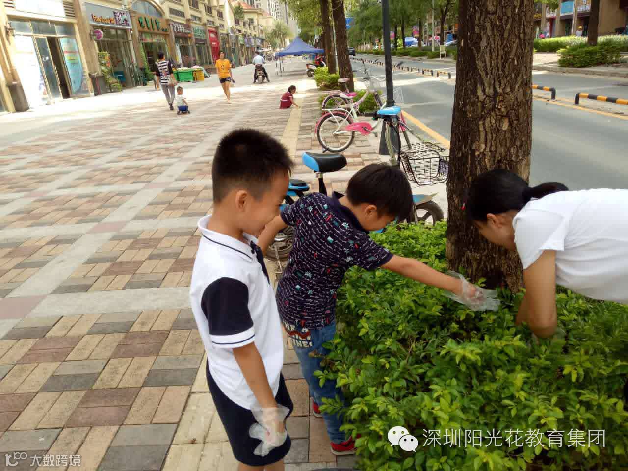 小宝贝们看到环卫奶奶正在工作,都与奶奶问好并帮奶奶一起清除杂草。