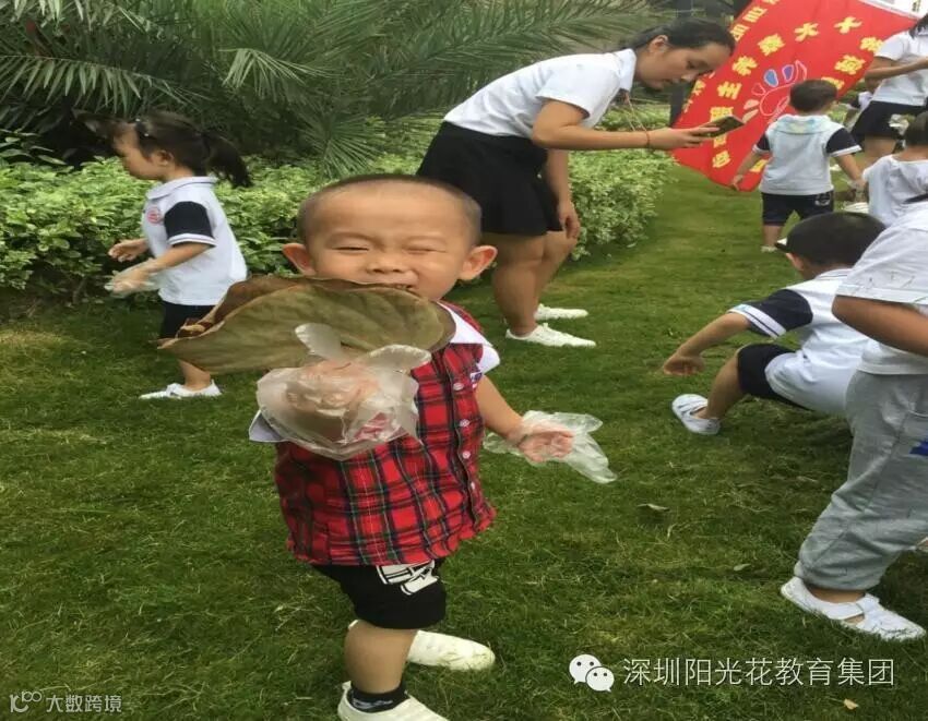 小宝贝们人虽小,从小就就知道讲卫生、爱护环境!