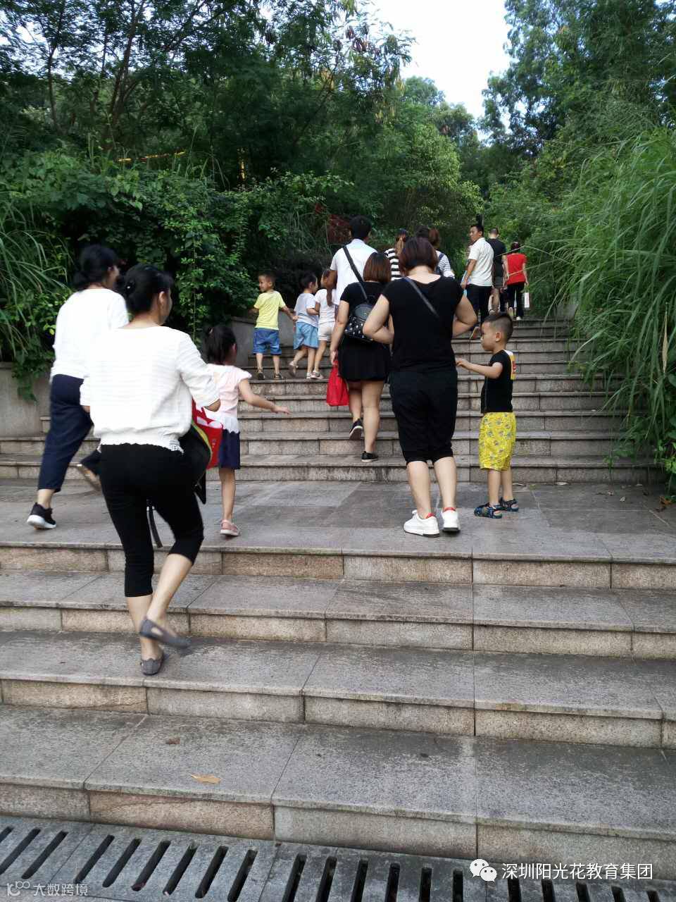 首先由各班老师统计好去远足的人数,提醒家长们准备好行走时所需物品。我们远足终点是——大顶巅公园,我们手牵着手,互相聊着天,出发了!不知不觉我们就来到了——大顶巅公园,大家合影留念,便开始行走起来。工作了一天,难得的放松,走在公园的林荫大道上,大家个个精神饱满,兴高采烈,徒步行走既锻炼了孩子们的意志力,又让孩子们亲密接触了大自然,在途中,老师与家长引导孩子们一起观察,一起看一看,说一说,听一听,发展了孩子们的观察能力,又促进了孩子们的口语表达能力与交往能力。