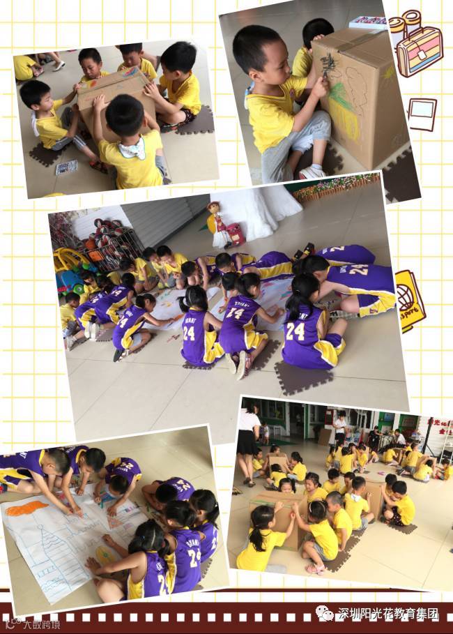 4、最后是分年级进行艺术创作。小班——吹画梅花。中班——手工我设计的娃娃。大班——创意纸箱画。大大班——缤纷童话人物。
