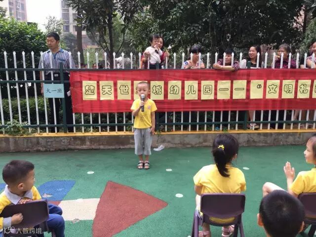 学礼仪、讲文明;我们请了大二班张英卓小朋友、大大班周奕舟小朋友做代表发言,一起来倡议文明礼貌活动的实施,同时也让更多的人知道;