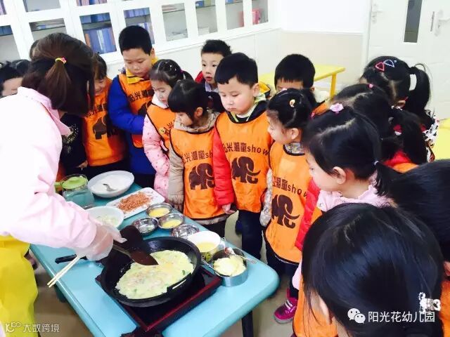 煎饼的时间是最最值得期待的,鸡蛋饼诱人的香味从平底锅中传出时孩子们在旁边兴奋的讨论着,当孩子们品尝着自己亲手制作的蛋饼,满满的幸福和快乐洋溢在他们的脸上。