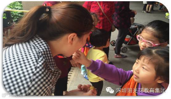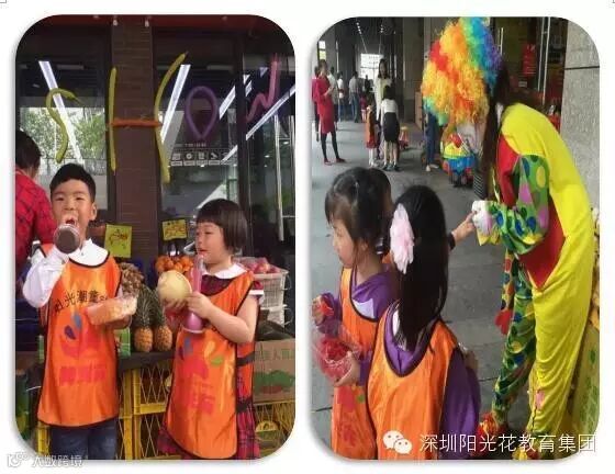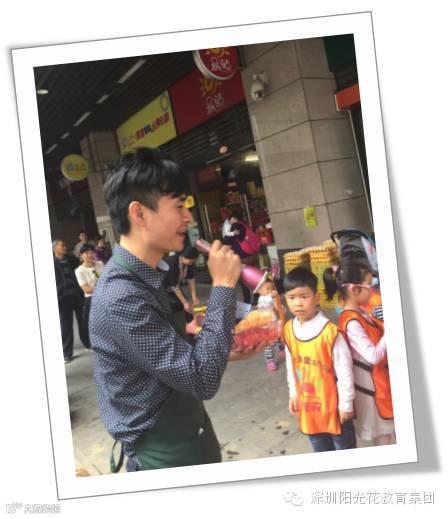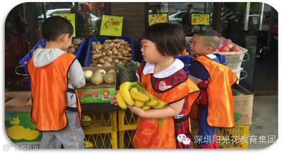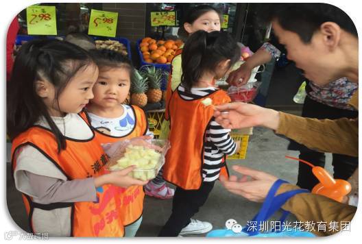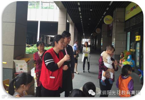 妈妈们一样和孩子们参与,大声的推销水果,孩子们跟着妈妈们学起来。