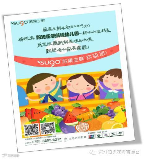 通过这次“阳光潮童SHOW”之我是小小导购员实践活动,孩子们在导购水果的过程中,提高了口语表达能力和人际交往能力,对各种水果导购有了初步的体验,感受到了成功的快乐!