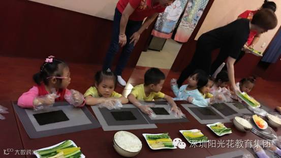 生日对幼儿来说是长大了一岁,是又一次的成长。2016年11月18日上午,金色童年幼儿园举办了11月份师生集体生日会。早上孩子们兴高采烈的来到公明《韩馆》寿司店,寿司师傅非常细心地教孩子们制作寿司步骤,学习过了,就轮到小朋友们自己动手了,紫菜铺平、放上白米、加点黄瓜、胡萝卜、涂点沙拉酱、卷一卷、在用刀切成一小块一小块、孩子们亲手制作的寿司出炉了,互相品尝着各自制作的寿司,小伙伴们开心极了。本次活动的开展不仅锻炼了幼儿的动手能力,同时也让幼儿了解了韩国美食的文化。最后,祝愿我们的寿星们生日快乐,健康成长!