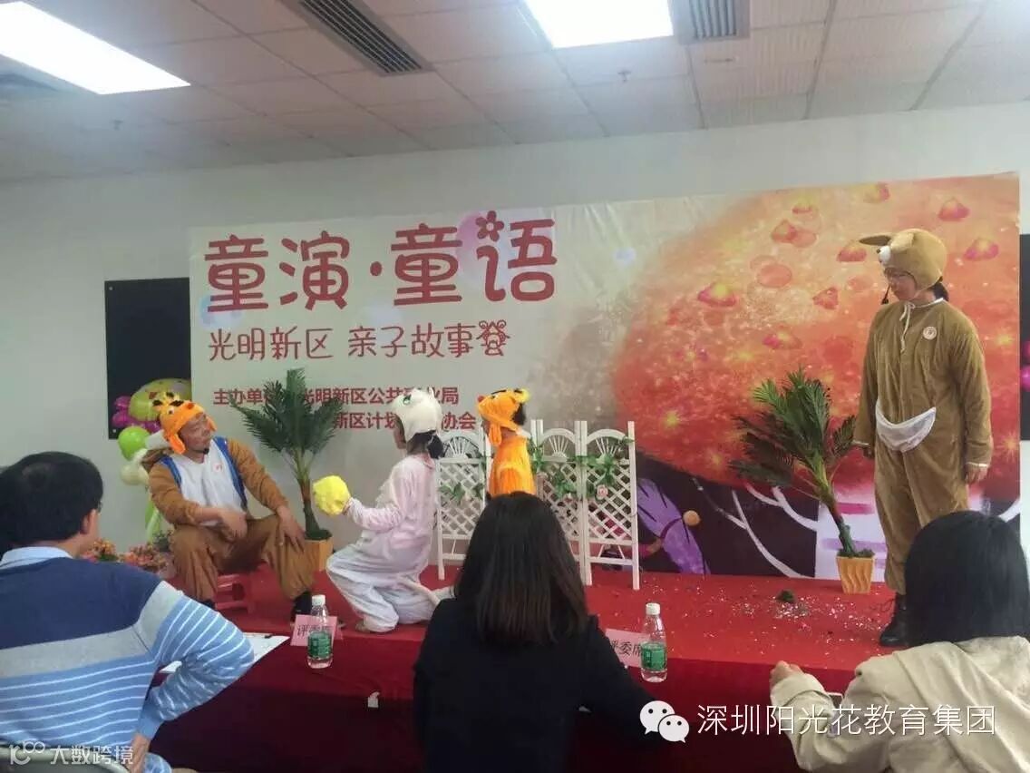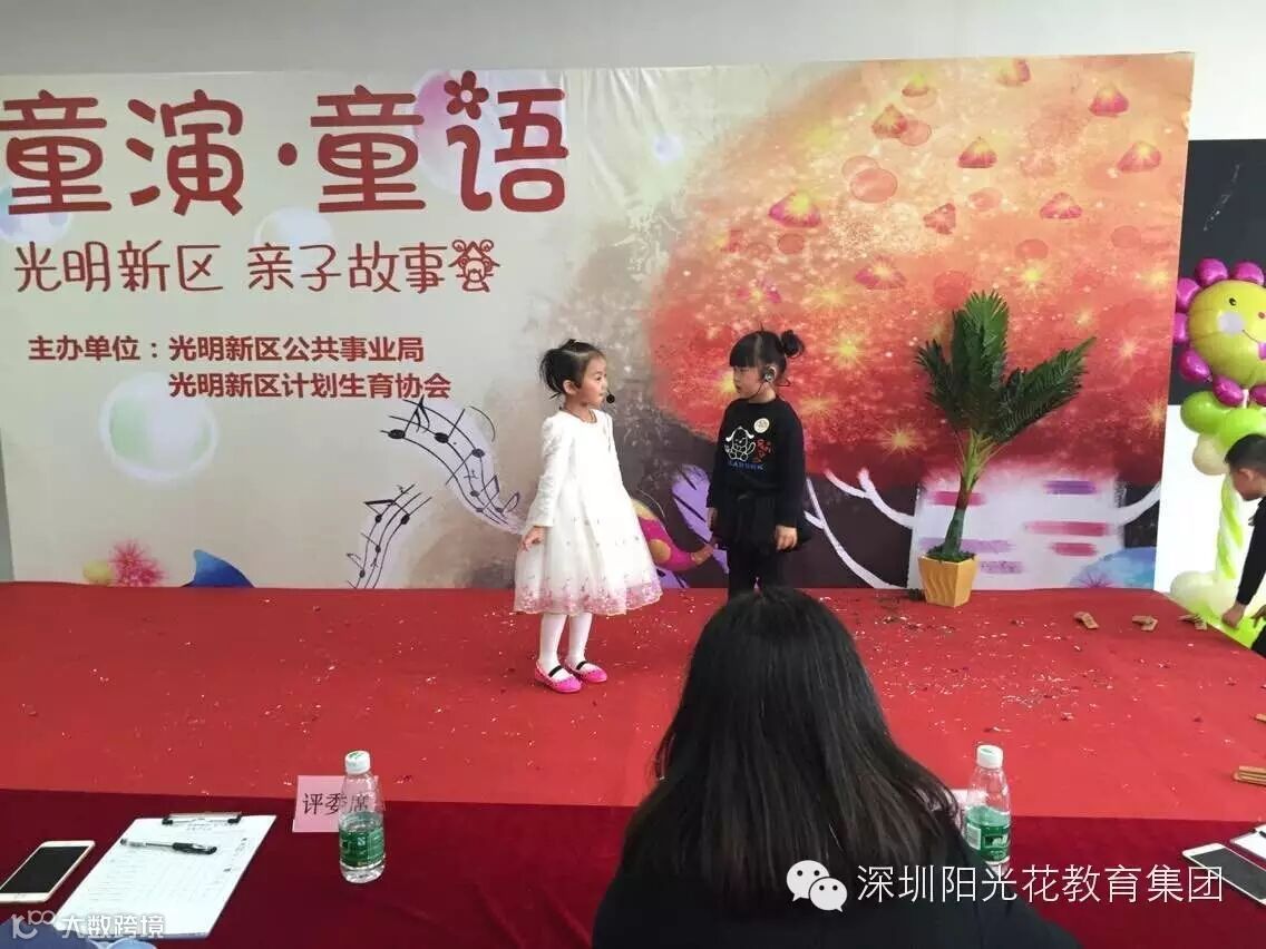 2016年3月19日阳光花深圳总部4所幼儿园(红太阳幼儿园、金色阳光幼儿园、红苹果幼儿园、金色未来幼儿园)代表集团参加,光明新区公共事业局组织的“亲子故事”初赛活动,小朋友和家长朋友的精彩演绎,充分展现了阳光花孩童自信、大胆、能说会讲、敢于表现的独特魅力!